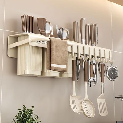 不锈钢厨房刀具置物架多功能免打孔刀架收纳架筷笼筷子筒壁挂式