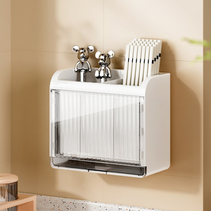 高档新款收纳盒壁挂式家用厨房快子勺子沥水置物架筷篓筷笼