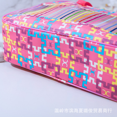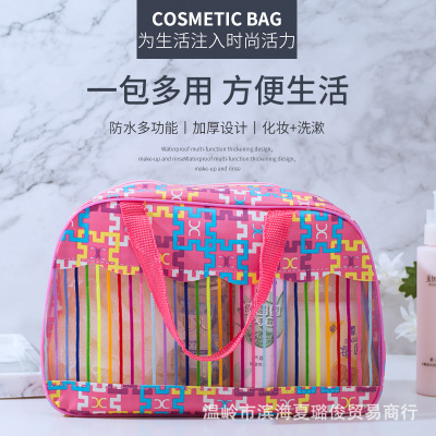 厂家直供大容量彩条图案洗漱外出便携手提收纳PVC化妆包厂家直供