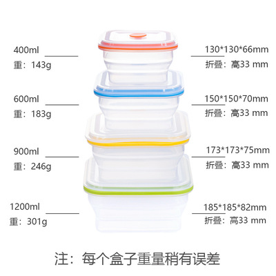 纯硅胶方形透明饭盒野餐户外便当盒 欧标硅胶折叠透明保鲜盒餐盒