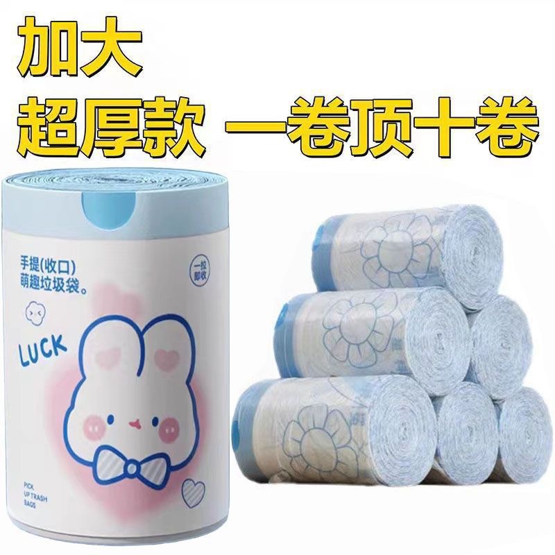 蓝心兔印花加厚手提垃圾袋 卡通家用厨房卫生间一次性抽绳垃圾袋