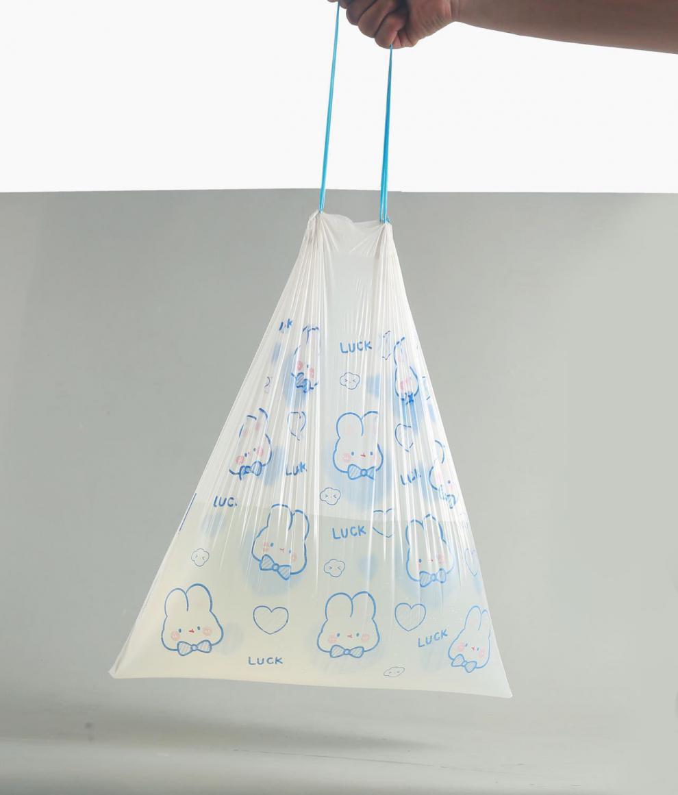 商品名称:蓝心兔印花加厚手提垃圾袋 卡通家用厨房卫生间一次性抽绳垃圾袋