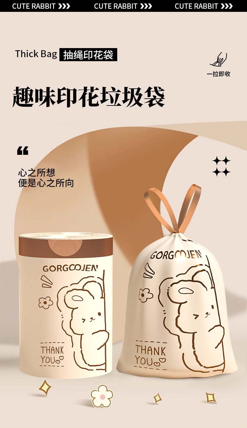 商品名称:新人专享小兔子印花垃圾袋点断试塑料袋卡通垃圾袋一次性抽绳垃圾