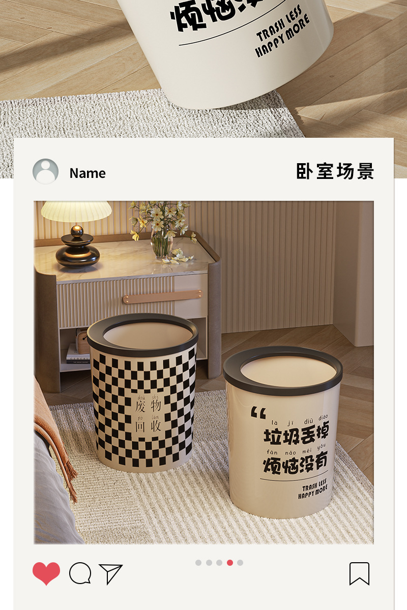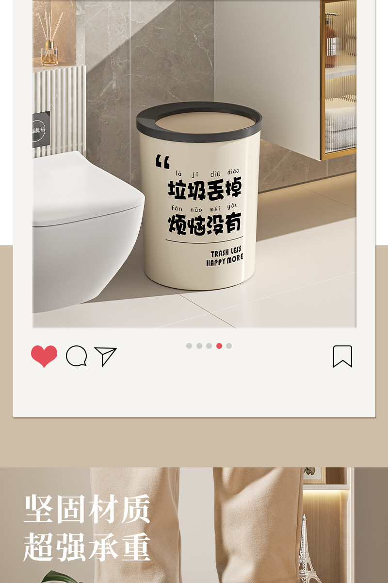 简约带压圈垃圾桶家用厨房大容量纸篓客厅厕所卧室加厚垃圾收纳桶