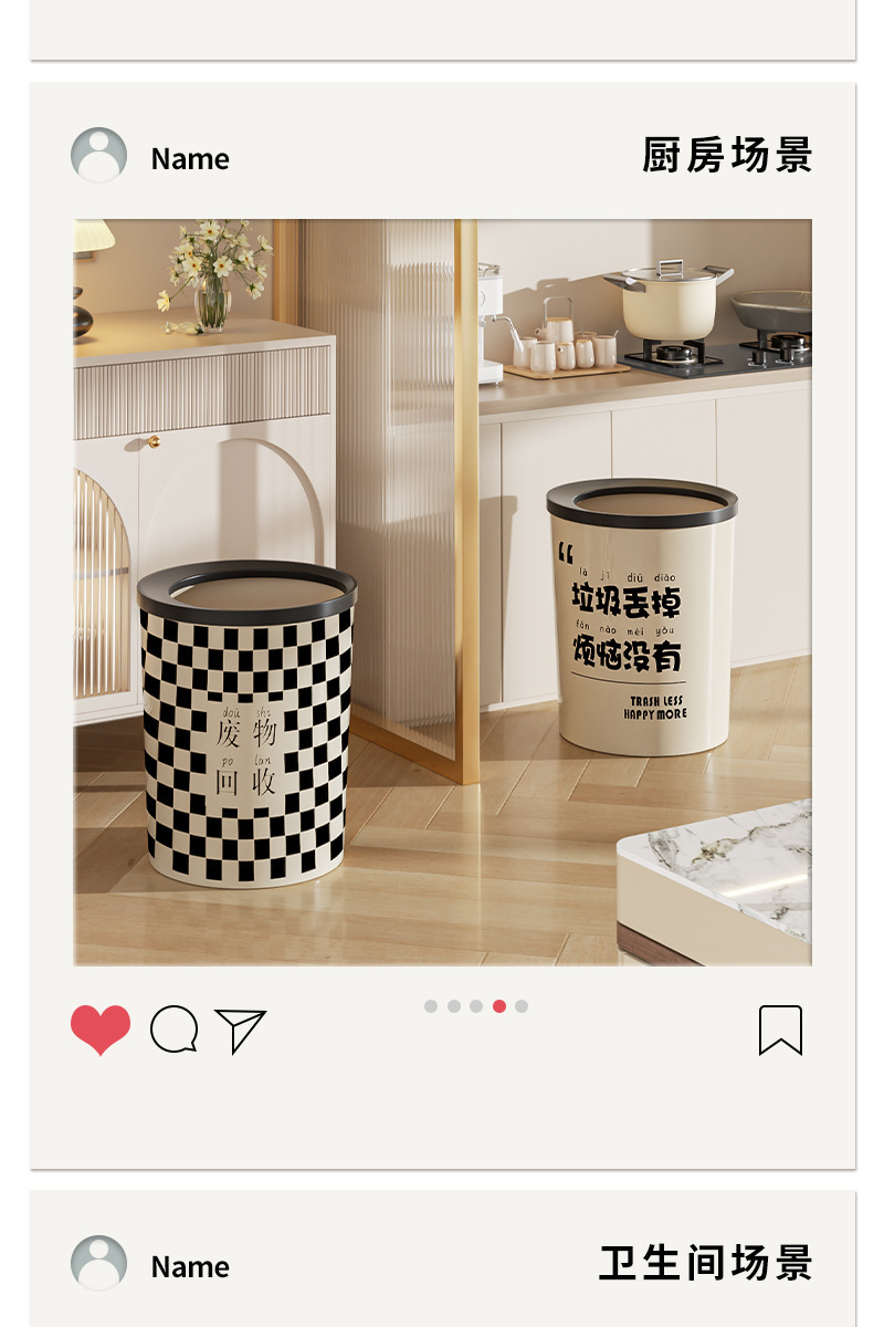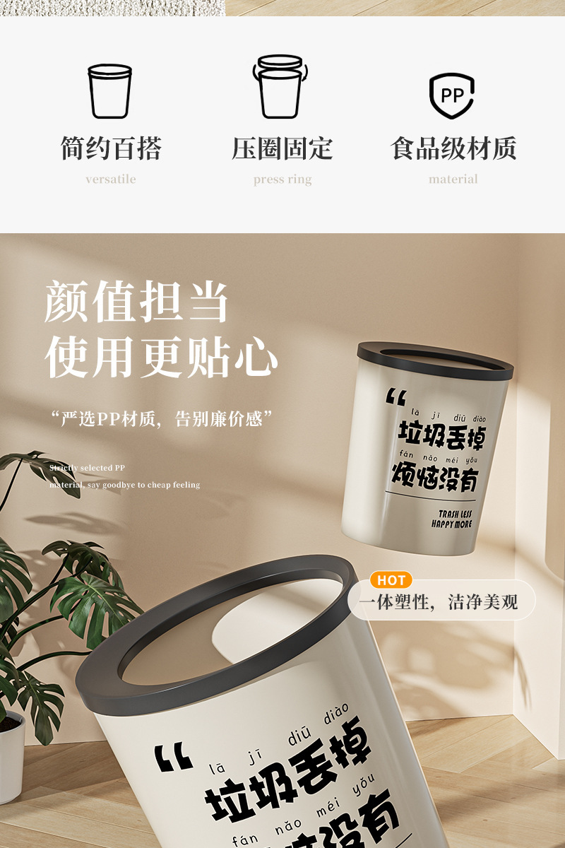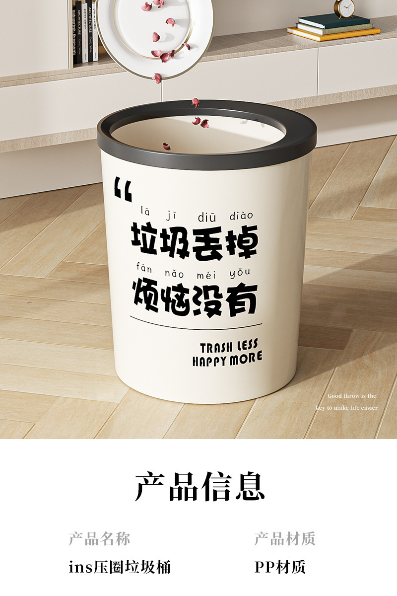 商品名称:简约带压圈垃圾桶家用厨房大容量纸篓客厅厕所卧室加厚垃圾收纳桶
