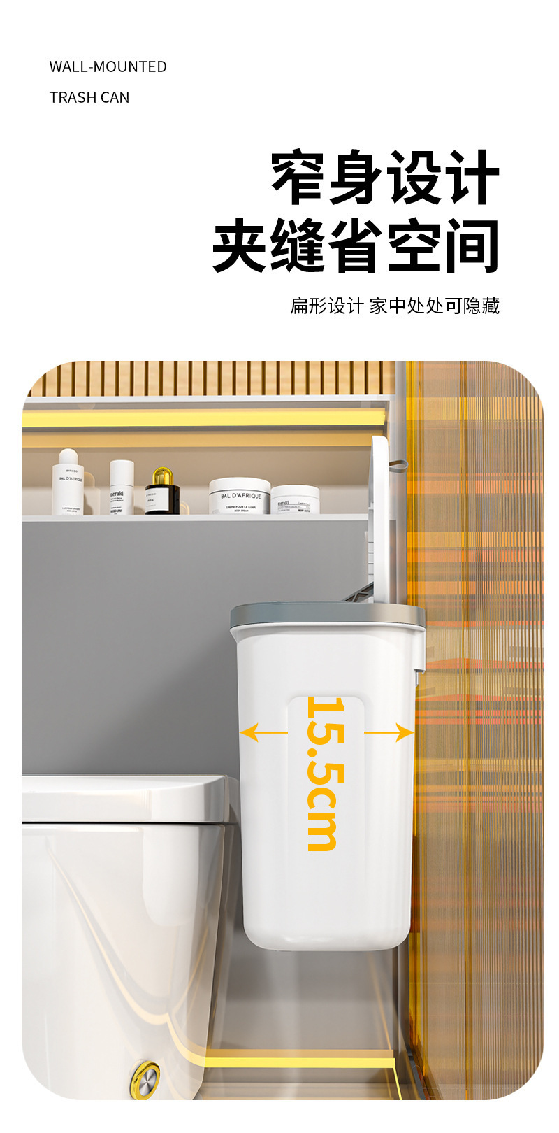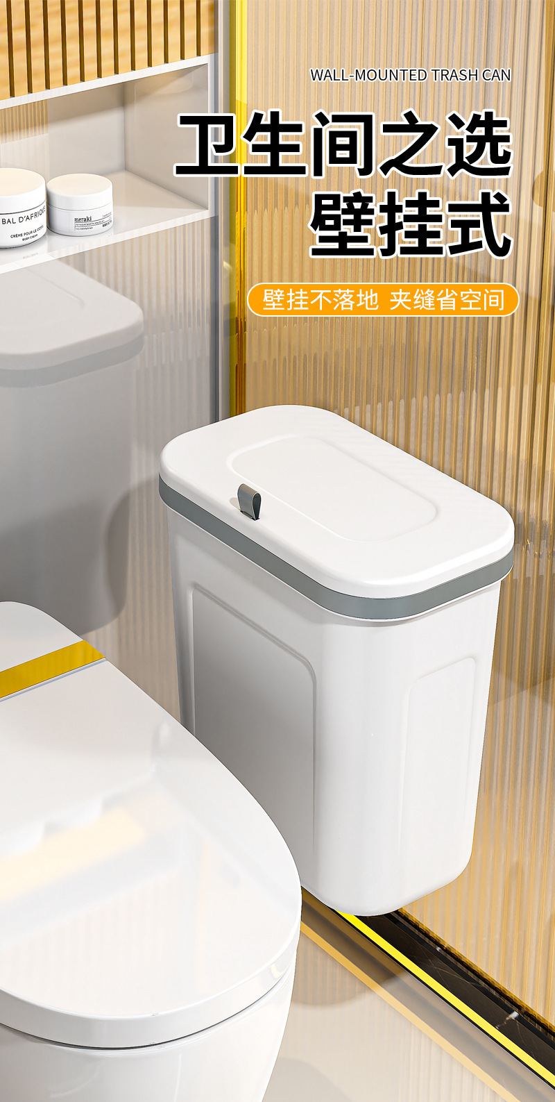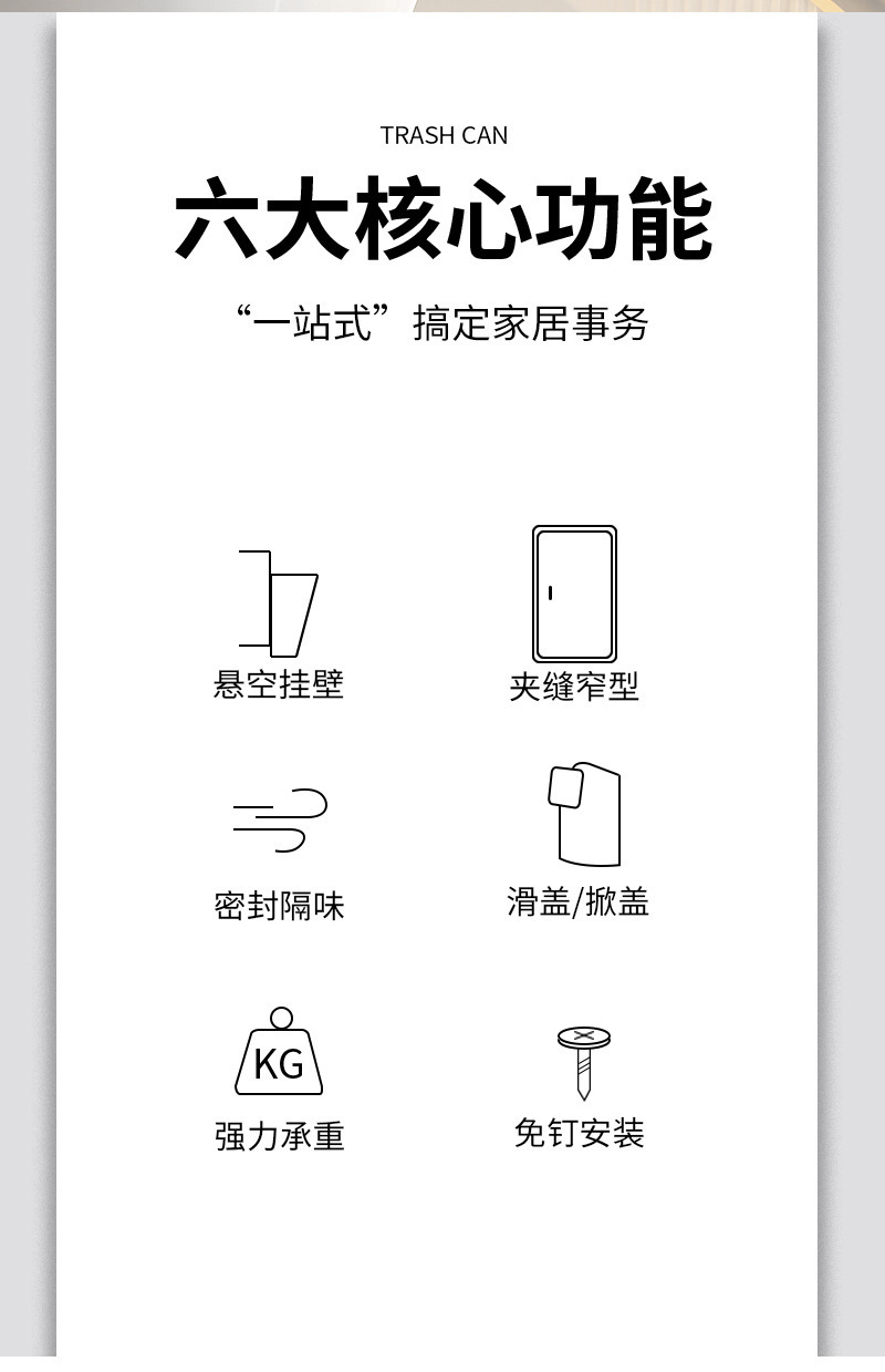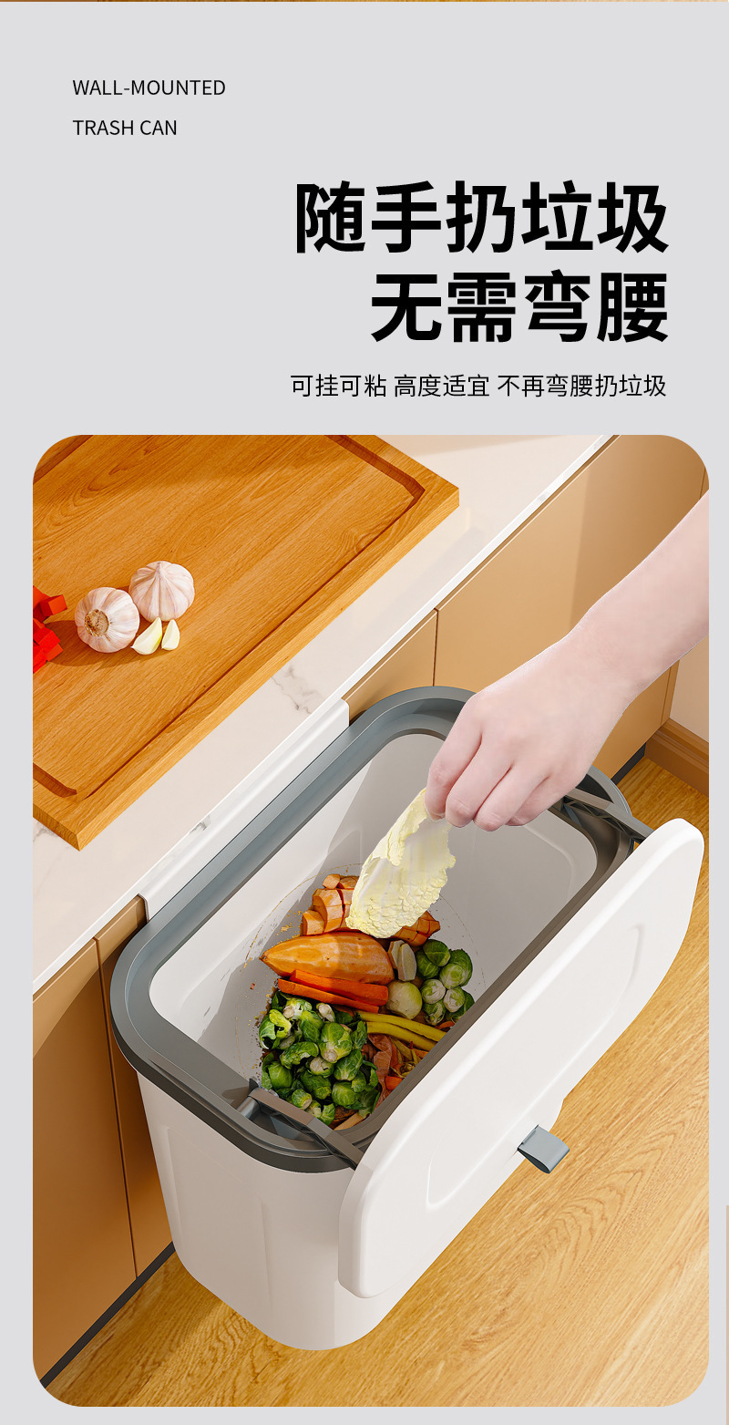 商品名称:卫生间壁挂垃圾桶家用厕所用免打孔无痕贴厨房挂式垃圾桶高级感