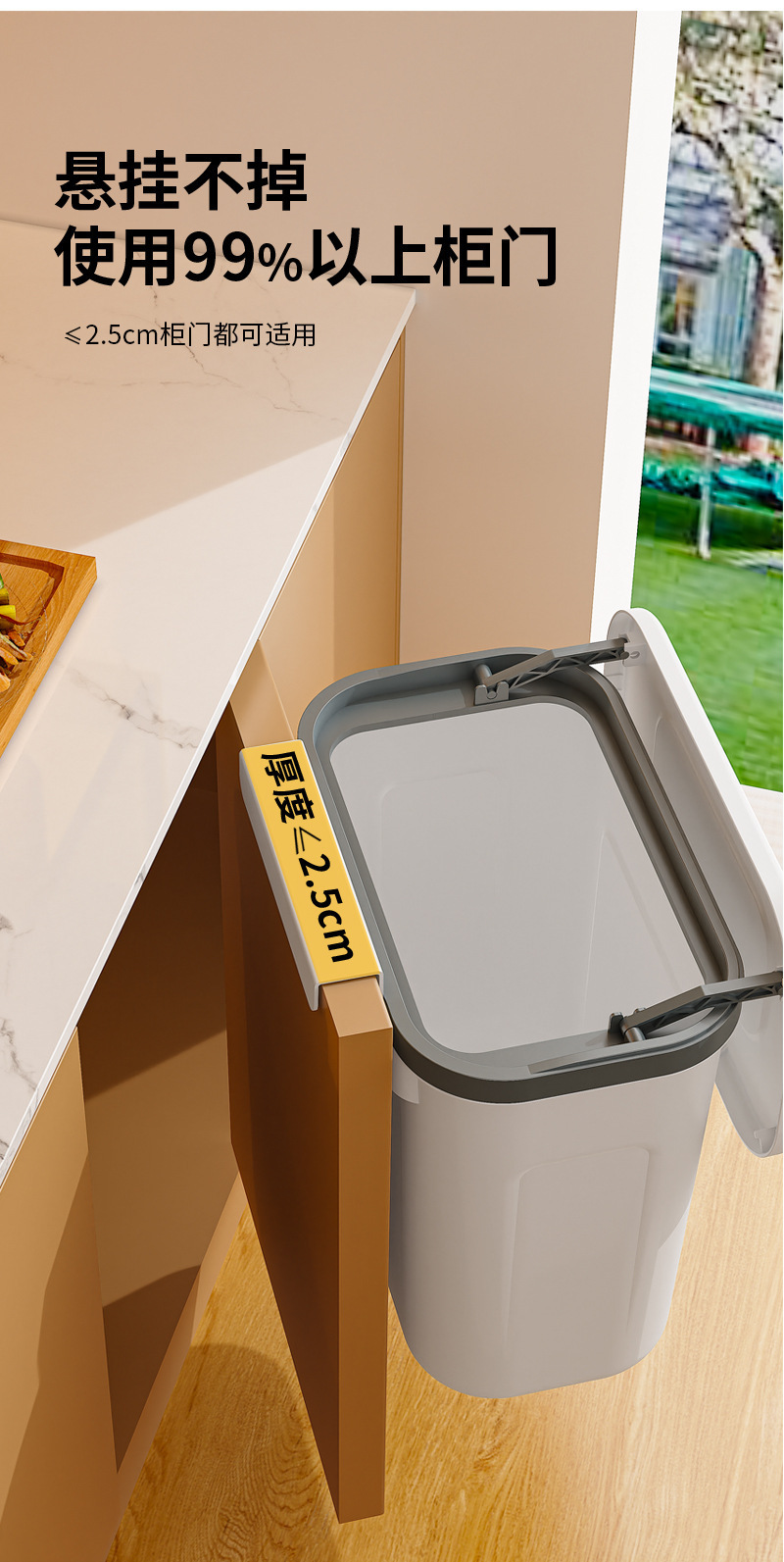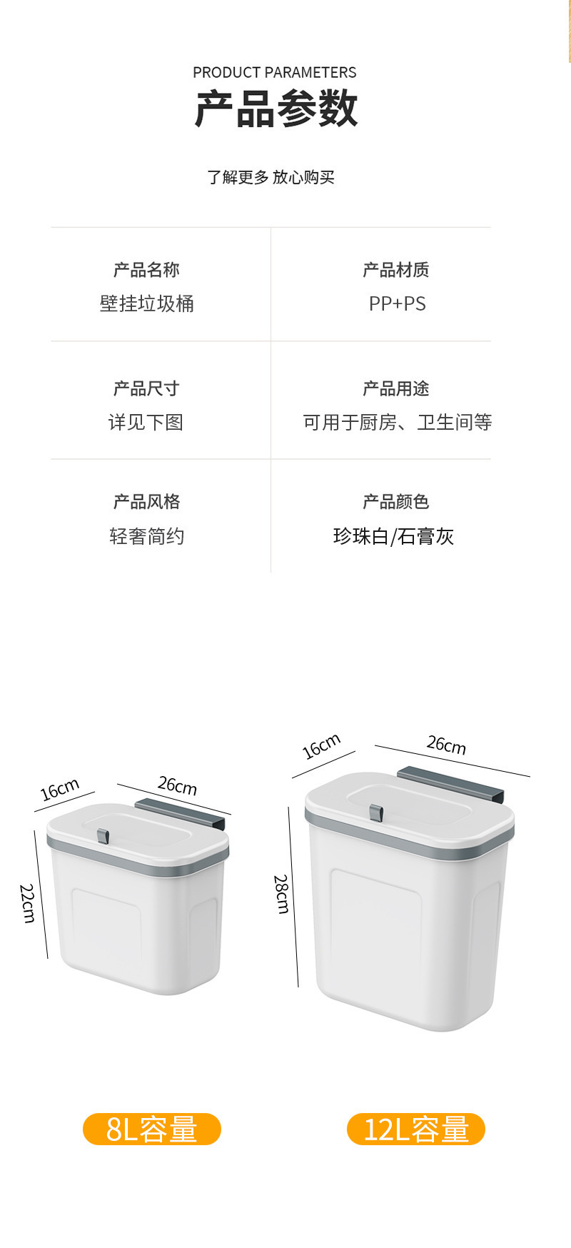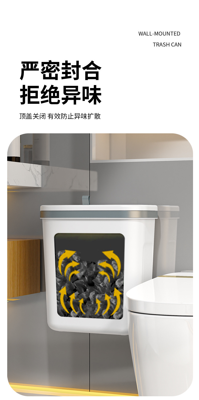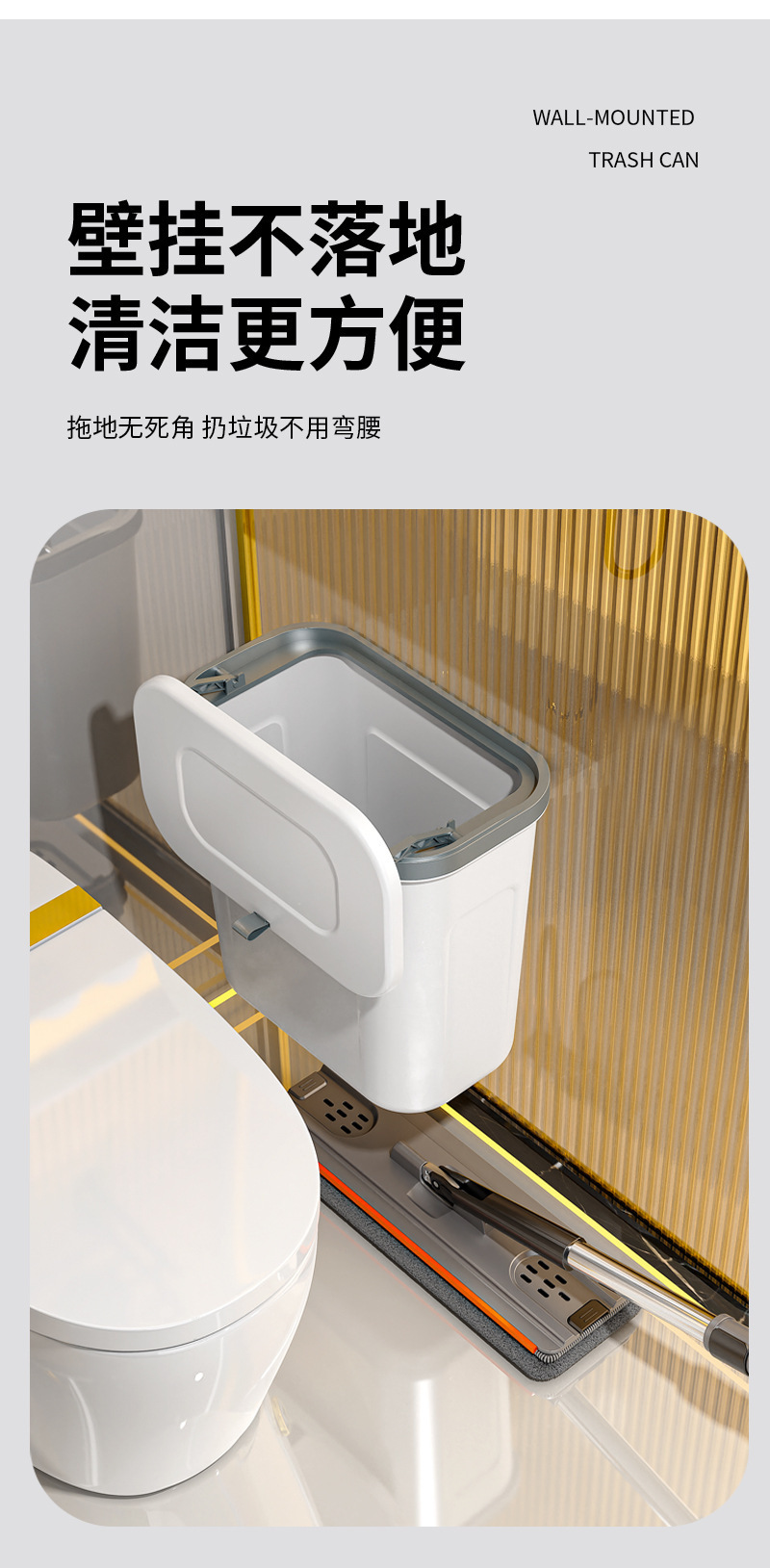 商品名称:卫生间壁挂垃圾桶家用厕所用免打孔无痕贴厨房挂式垃圾桶高级感