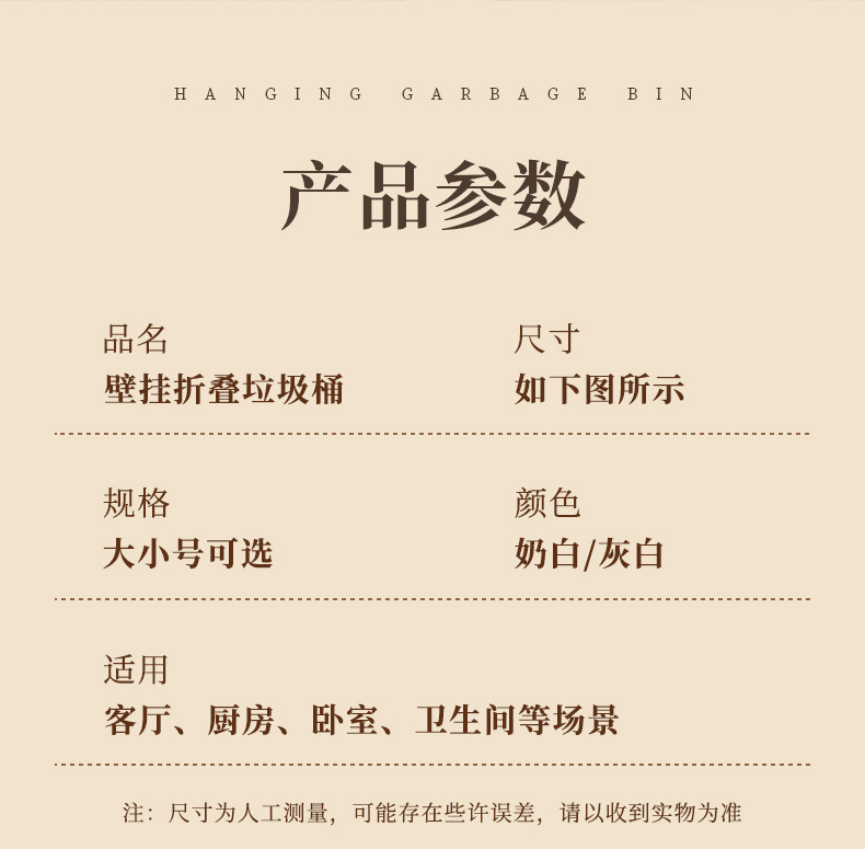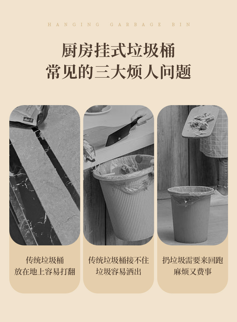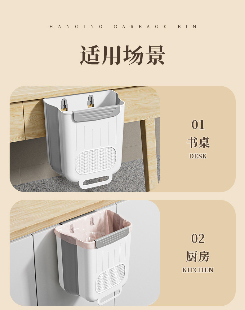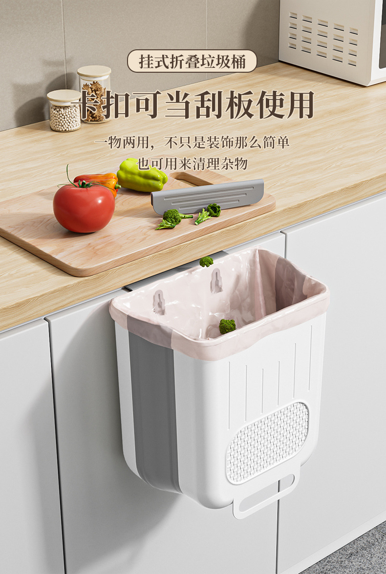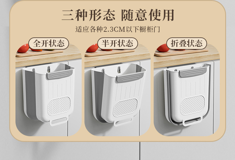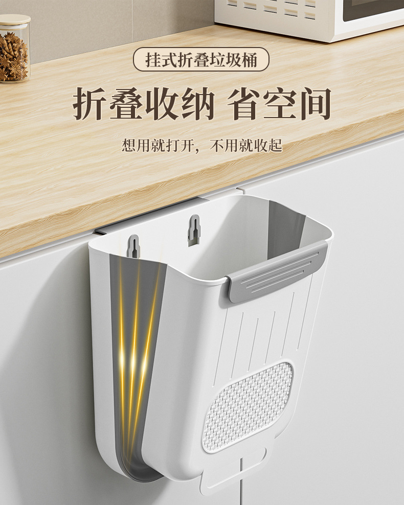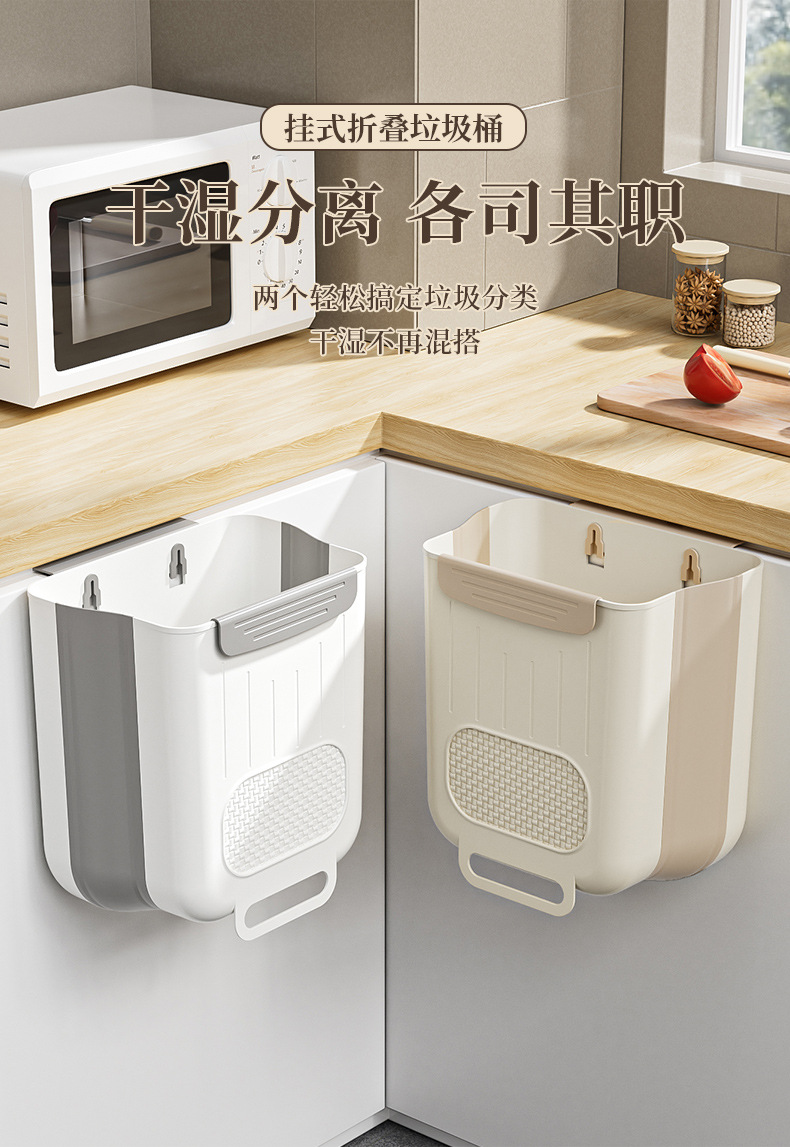 商品名称:时尚壁挂垃圾桶家用分类垃圾桶可折叠落地收纳桶挂厨房柜门垃圾桶