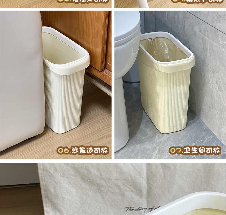 商品名称:卫生间夹缝垃圾桶家用洗手间大容量无盖长方形垃圾篓厕所纸篓小号