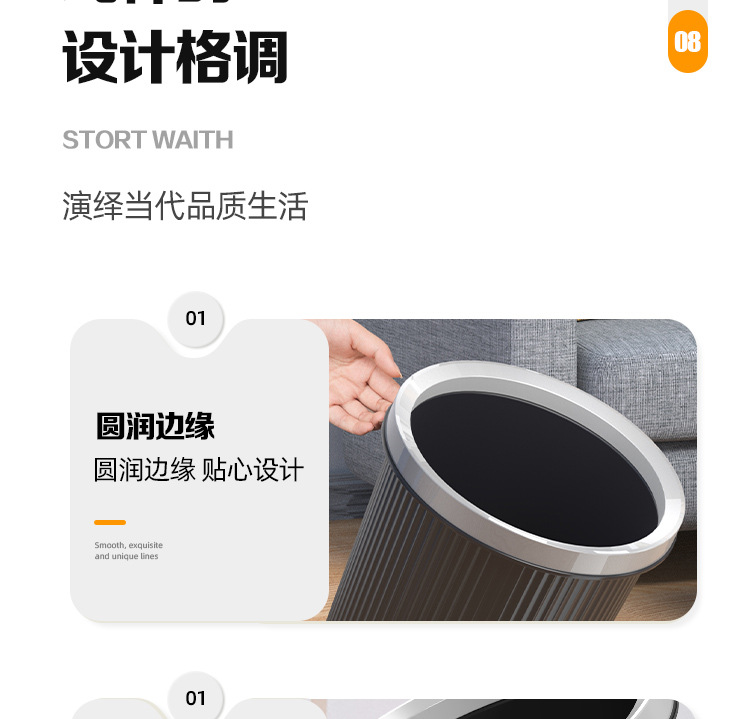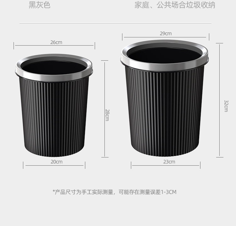 商品名称:本迪垃圾桶 17L黑色压圈垃圾桶垃圾篓家用厨房卫生间办公室垃圾桶