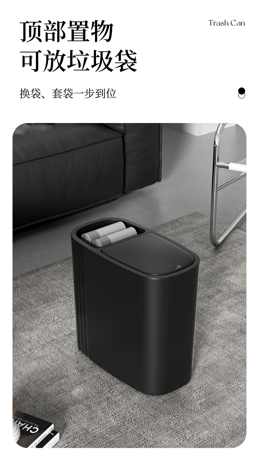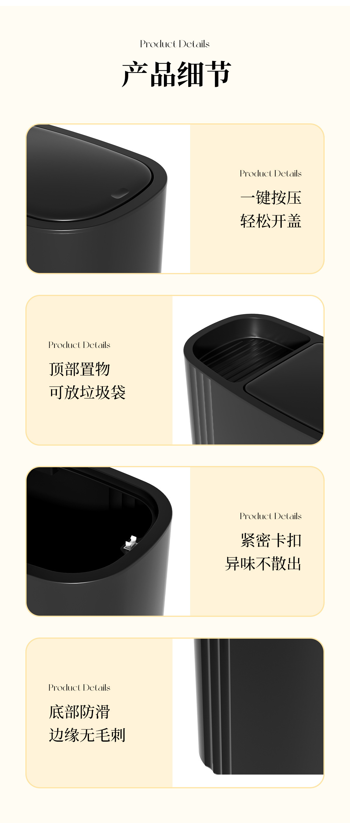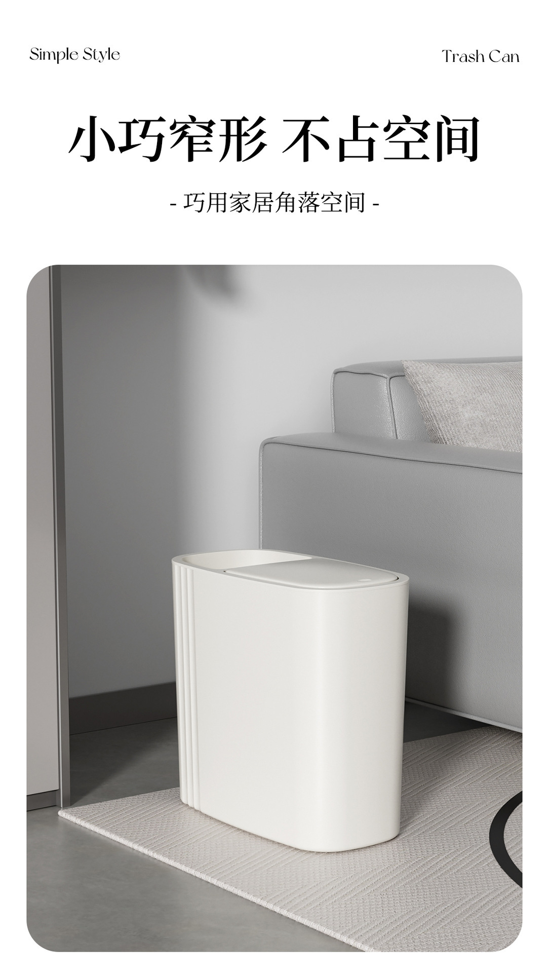 商品名称:按压式垃圾桶家用厕所用密封防臭高颜值厨房轻奢简约夹缝纸篓