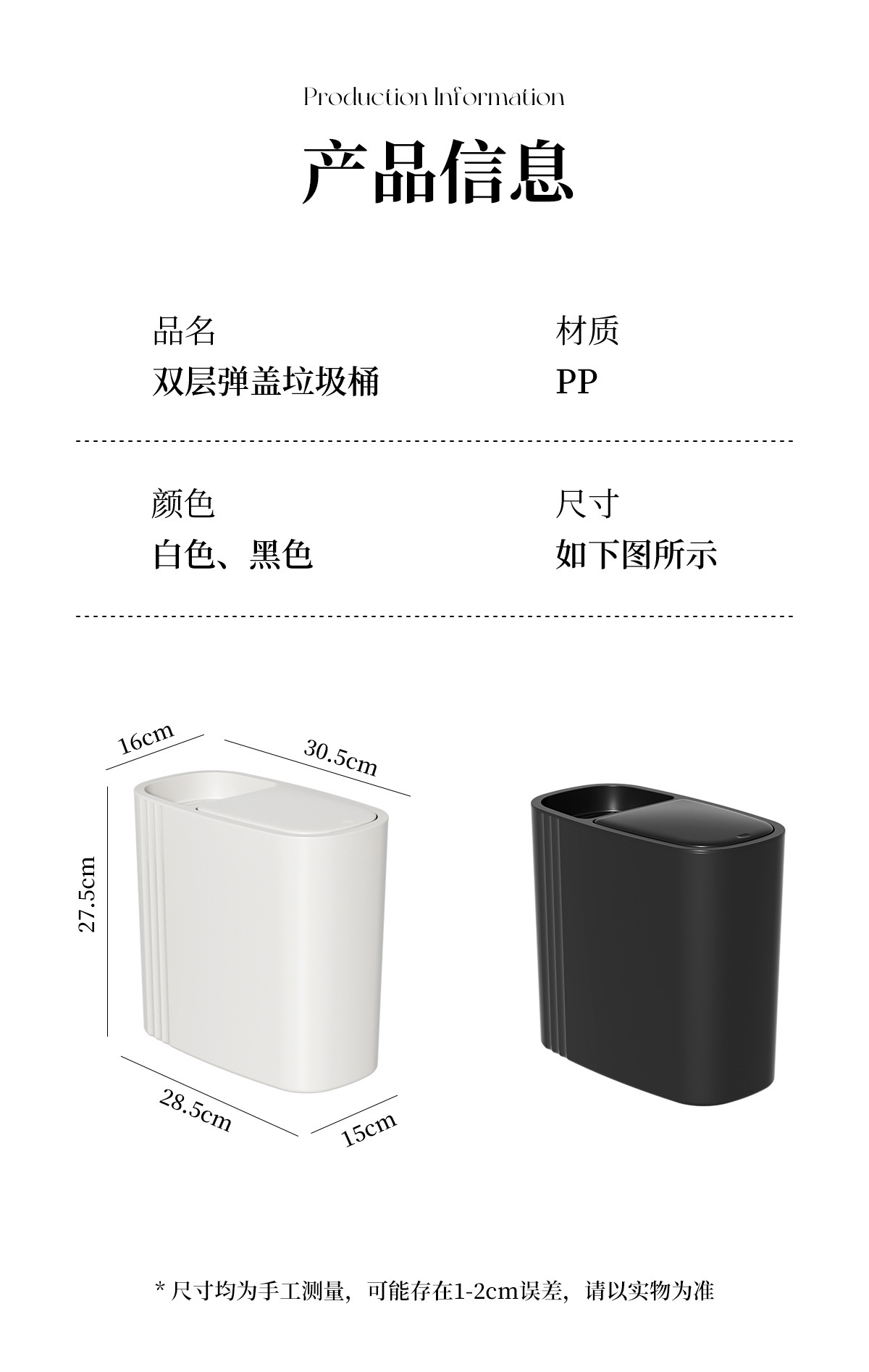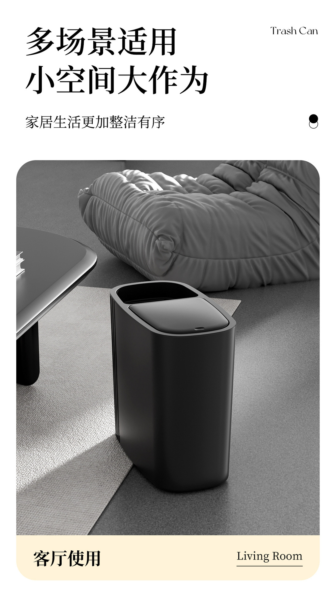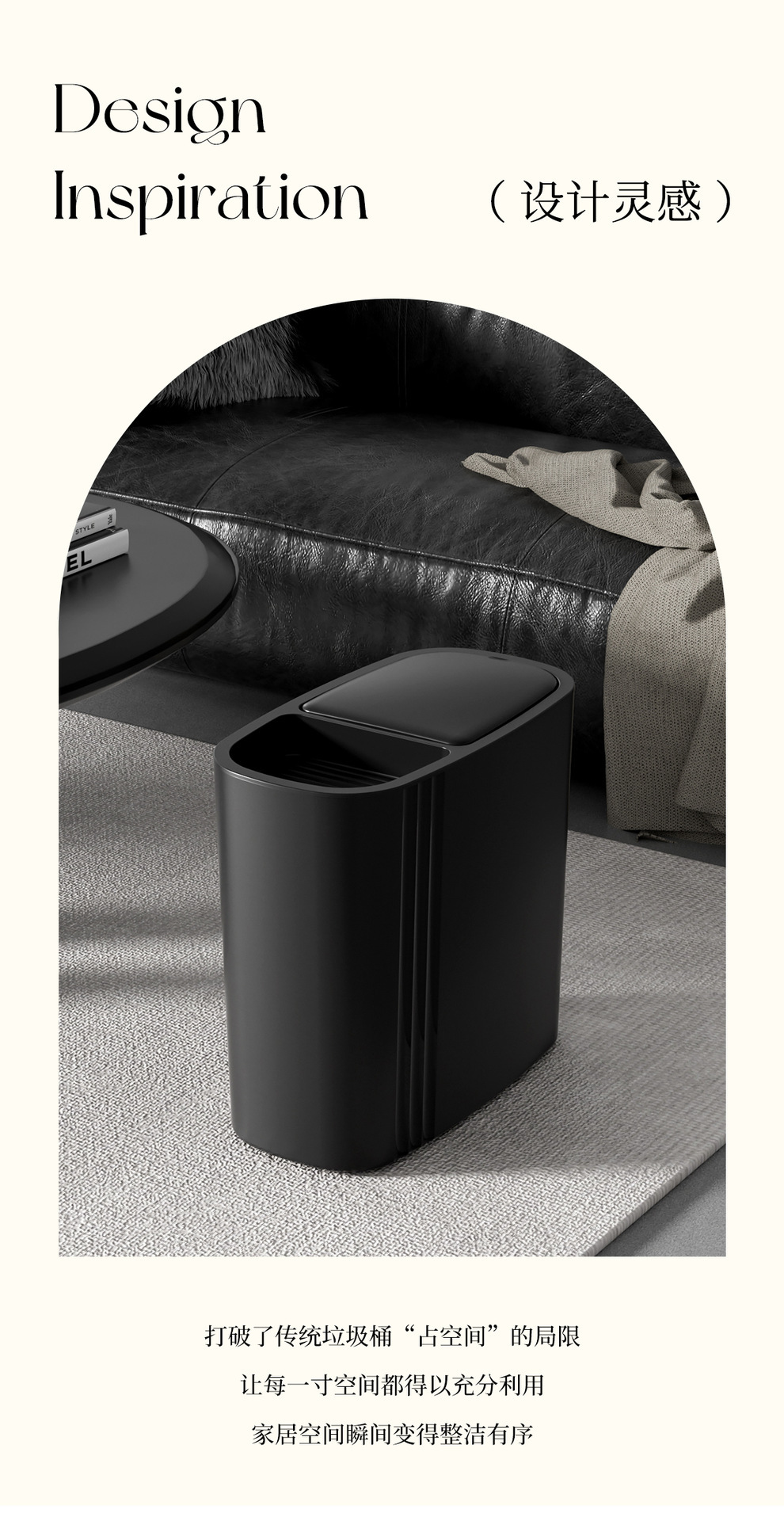 商品名称:按压式垃圾桶家用厕所用密封防臭高颜值厨房轻奢简约夹缝纸篓