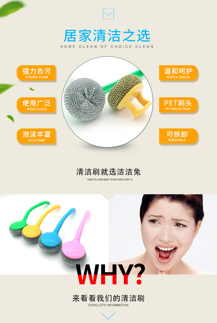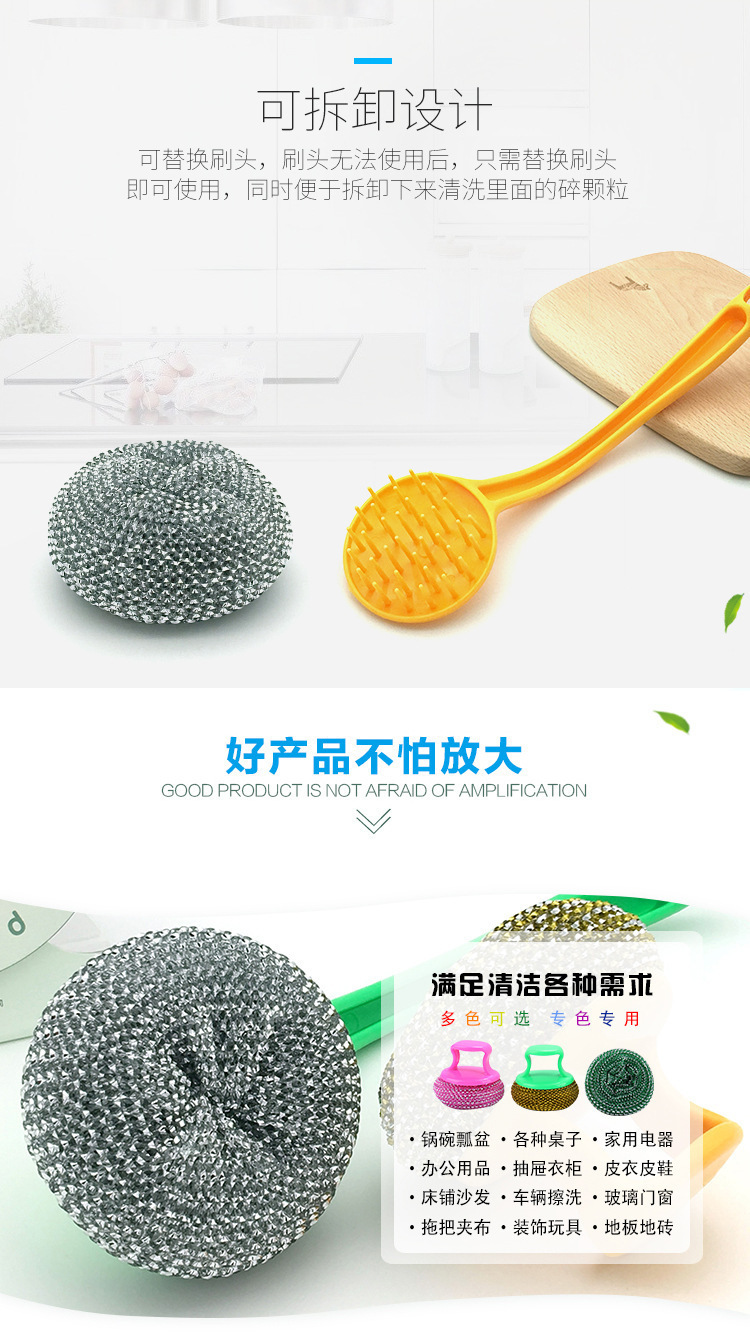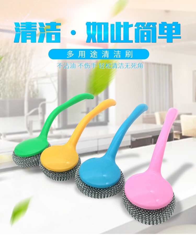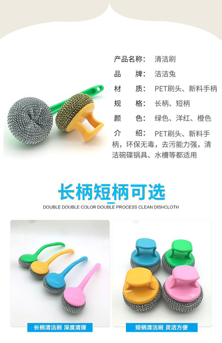 商品名称:不伤锅清洁球钢丝球带手柄锅刷家用长柄刷子带把塑钢洗碗神器新款