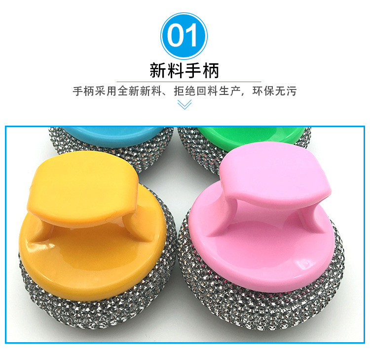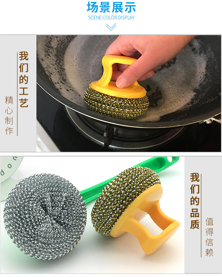 不伤锅清洁球钢丝球带手柄锅刷家用长柄刷子带把塑钢洗碗神器新款