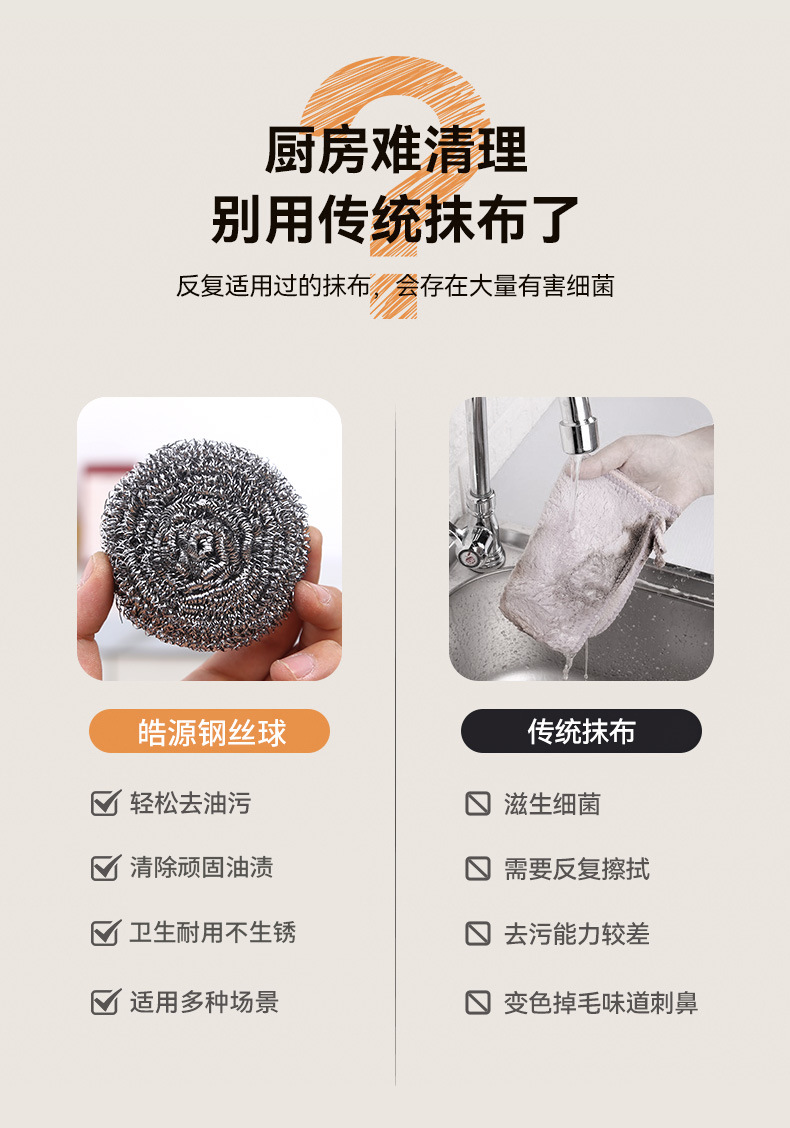 商品名称:厨卫洁强力型去污擦不锈钢清洁球厂家供应 不掉渣不生锈钢丝球