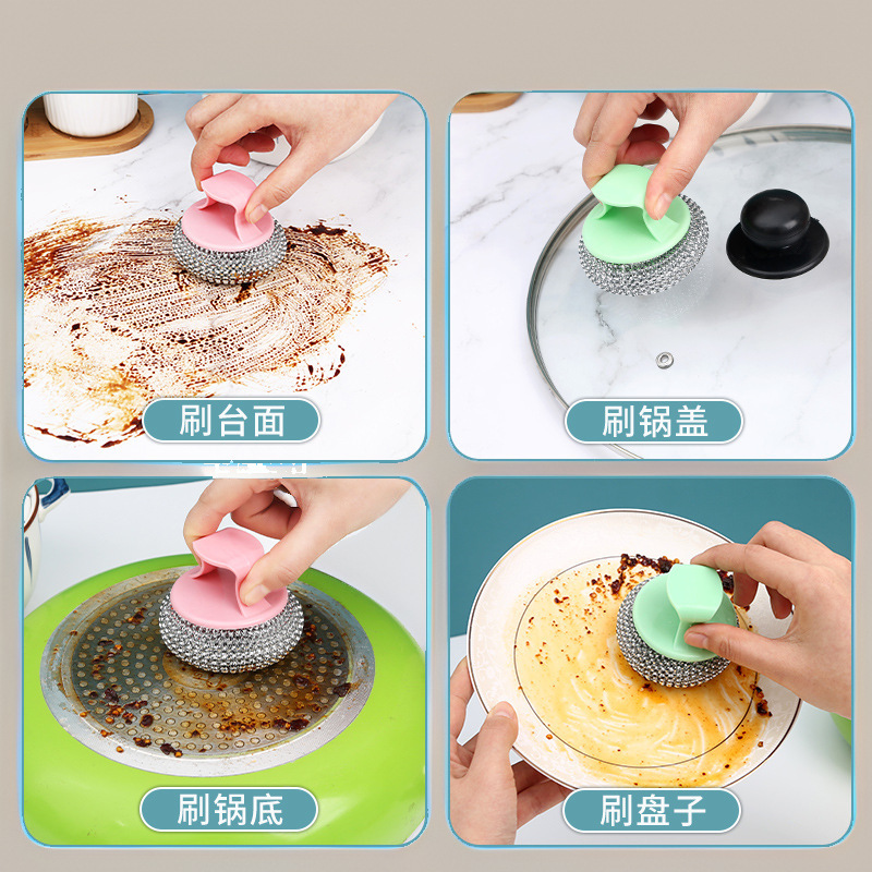 商品名称:锅清洁球钢丝球带手柄锅刷家用长柄刷子带把塑钢洗碗新款