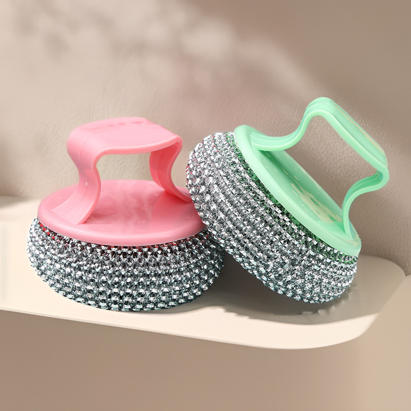 锅清洁球钢丝球带手柄锅刷家用长柄刷子带把塑钢洗碗新款