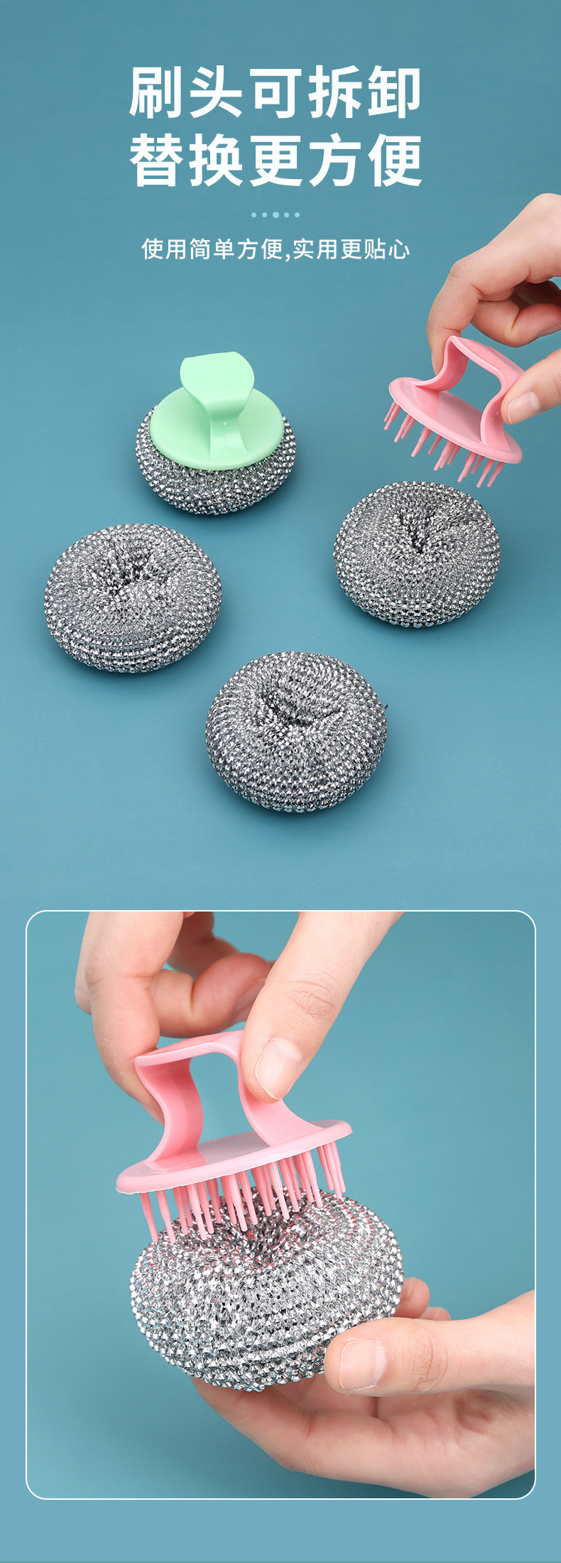 商品名称:塑料清洁球不伤锅PET清洁球/刷纳米锅刷带柄可替换清洁刷钢丝球