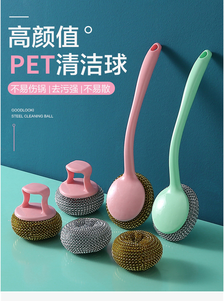商品名称:强力去污非钢丝球锅刷家用长手柄刷子塑钢不伤锅pet清洁球