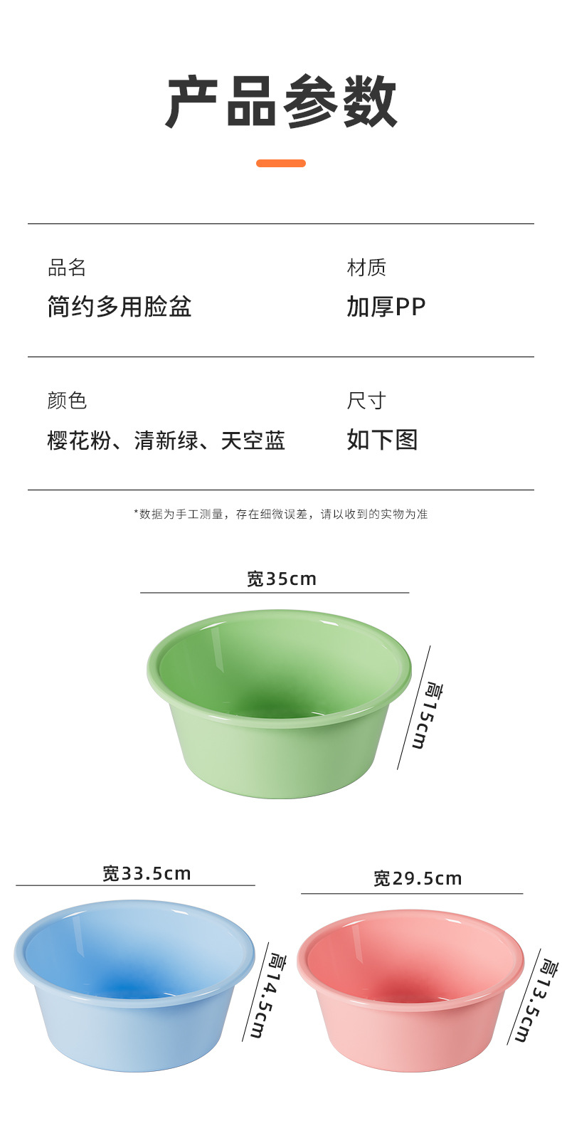 商品名称:加厚洗脸盆塑料家用大中小号洗衣服盆子学生宿舍洗脚盆婴儿小面盆