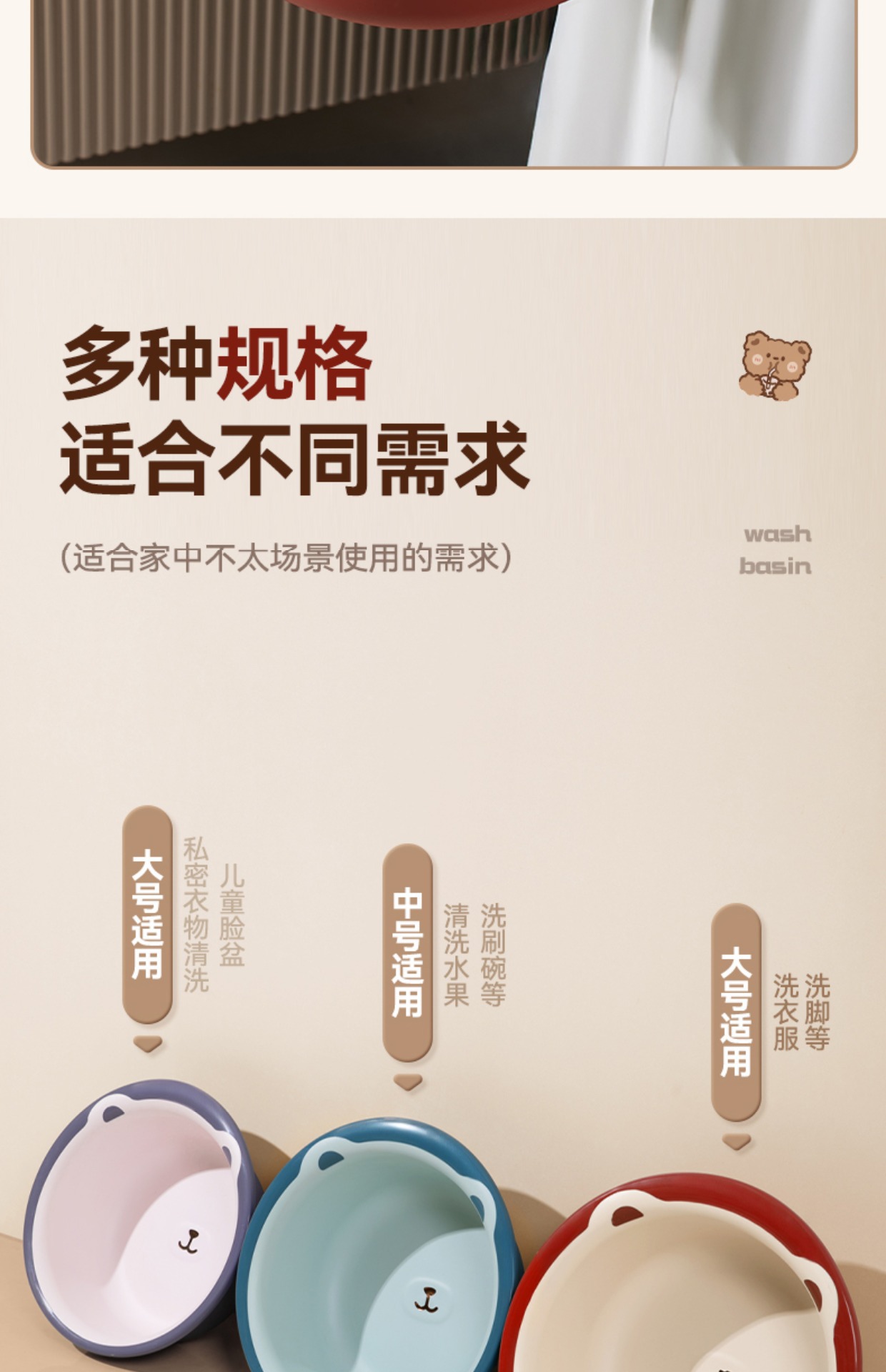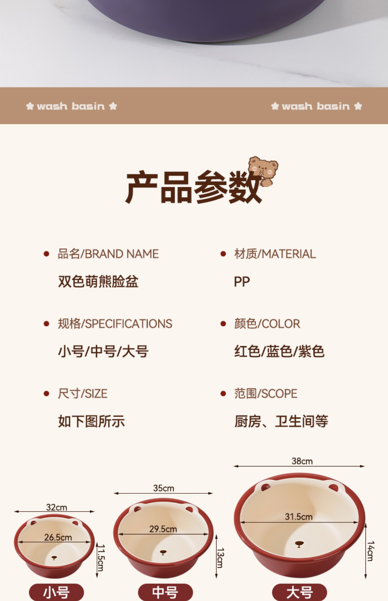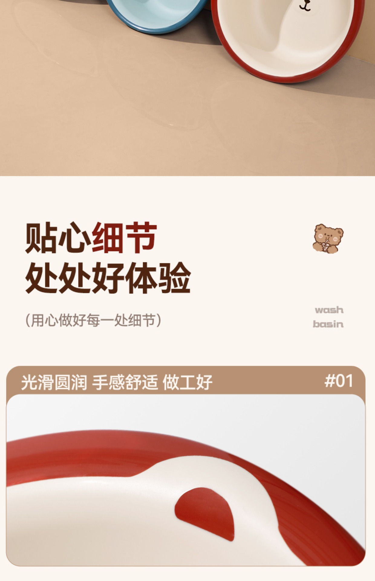 产品名称:双色萌熊脸盆