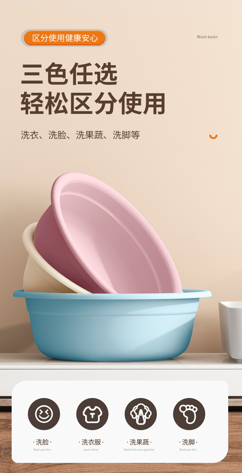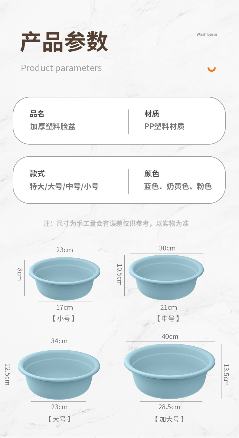 商品名称:加厚洗脸盆塑料家用大中小号洗衣服盆子学生宿舍洗脚盆婴儿小面盆