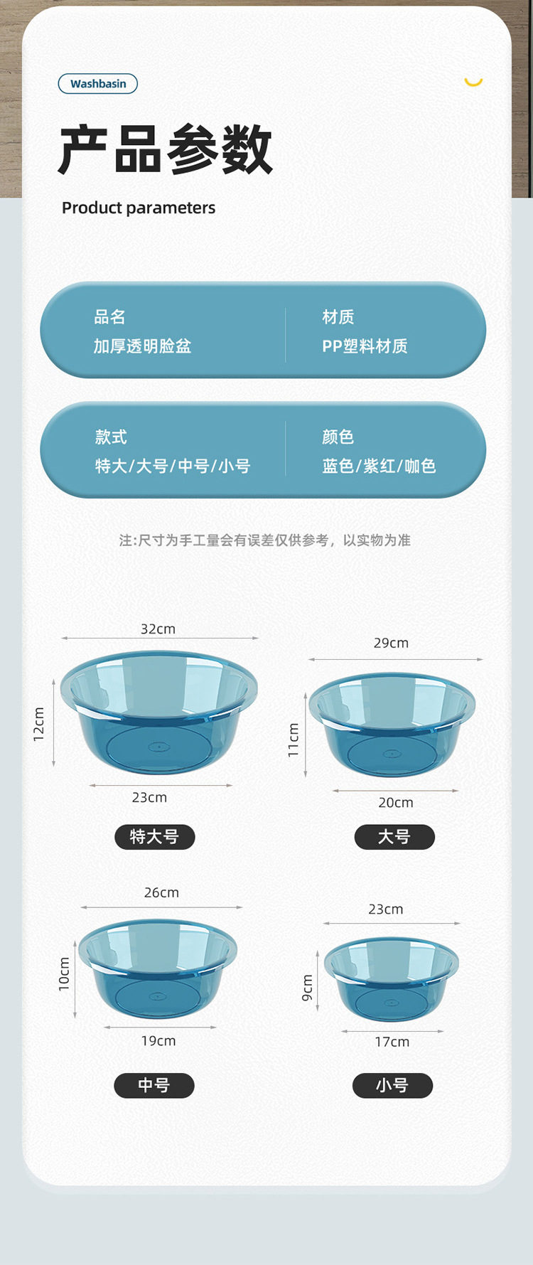 商品名称:加厚耐摔塑料脸盆家用大号洗菜洗脸盆耐用洗衣洗脚厨房宿舍小盆子
