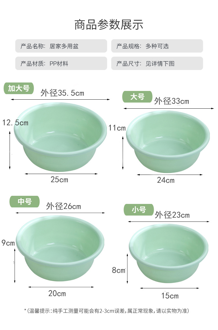 商品名称:加厚塑料洗脸盆家用大中小号洗衣服盆子学生宿舍洗脚盆小婴儿面盆