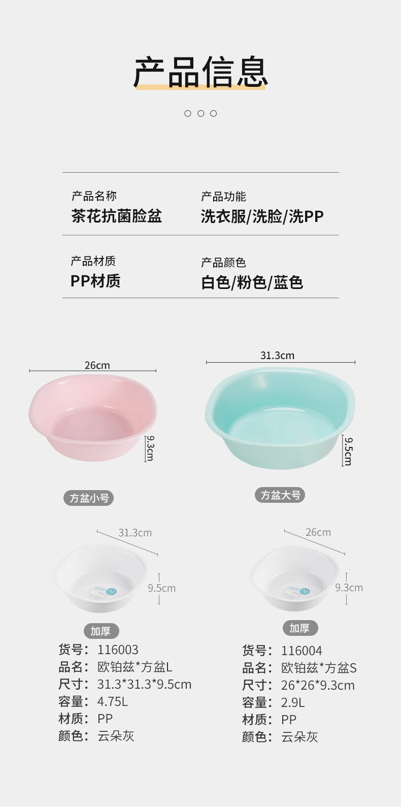 商品名称:茶花抗菌脸盆孕产妇儿童学生宿舍洗脸洗衣服加厚私处家用清洁盆