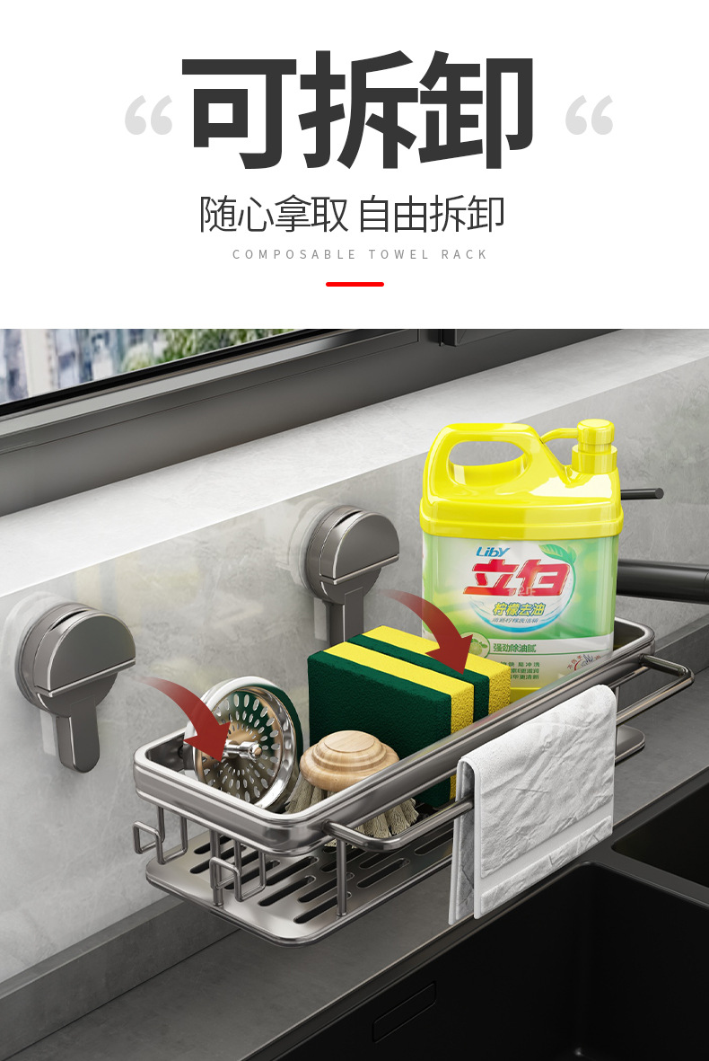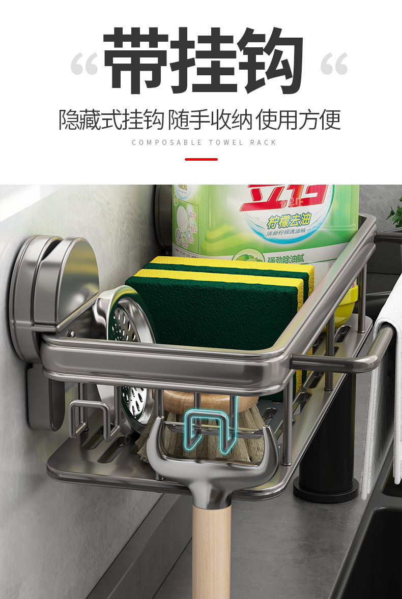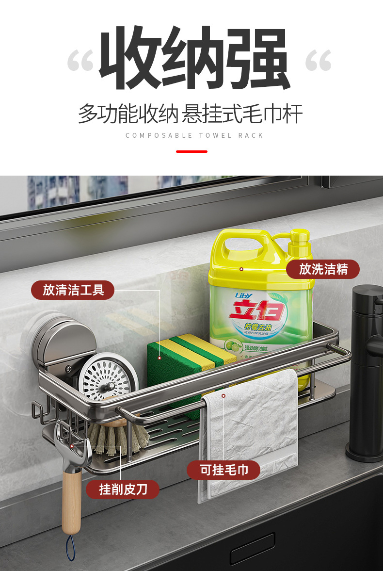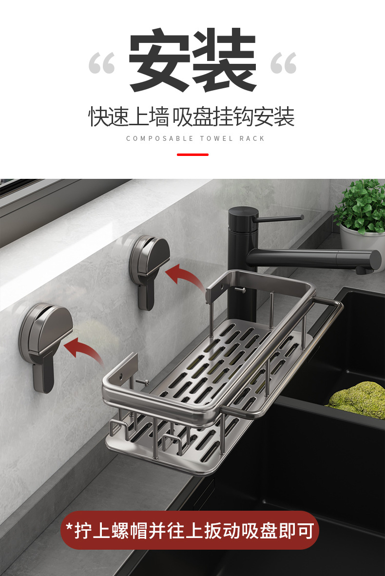 商品名称:厨房吸盘抹布架沥水壁挂式多功能水槽置物架水龙头洗碗海绵收纳架