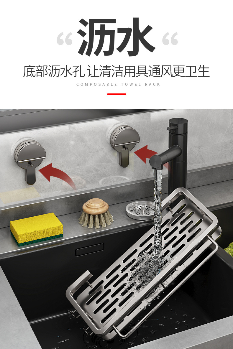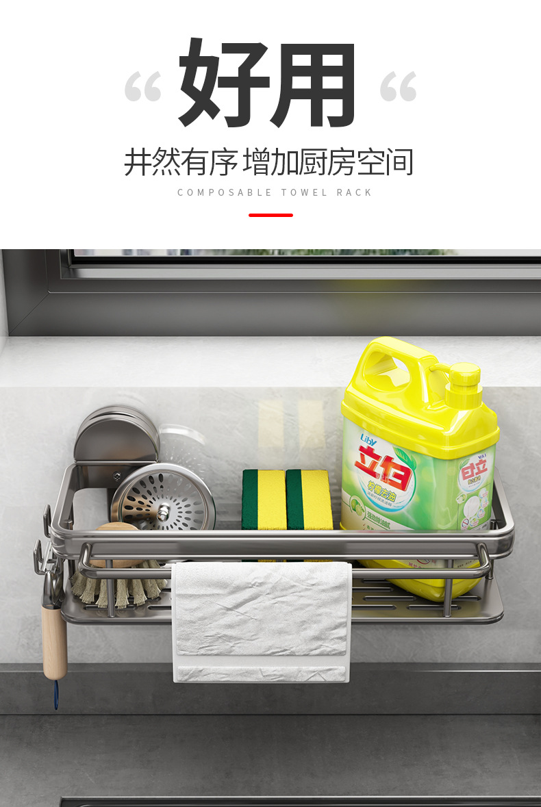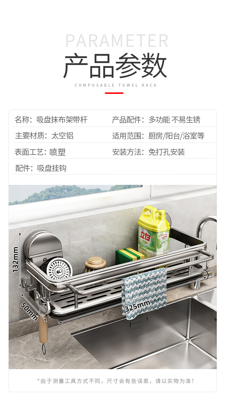 商品名称:厨房吸盘抹布架沥水壁挂式多功能水槽置物架水龙头洗碗海绵收纳架