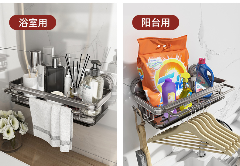 吸盘式【升级款】枪灰抹布置物架(双钩带杆)
