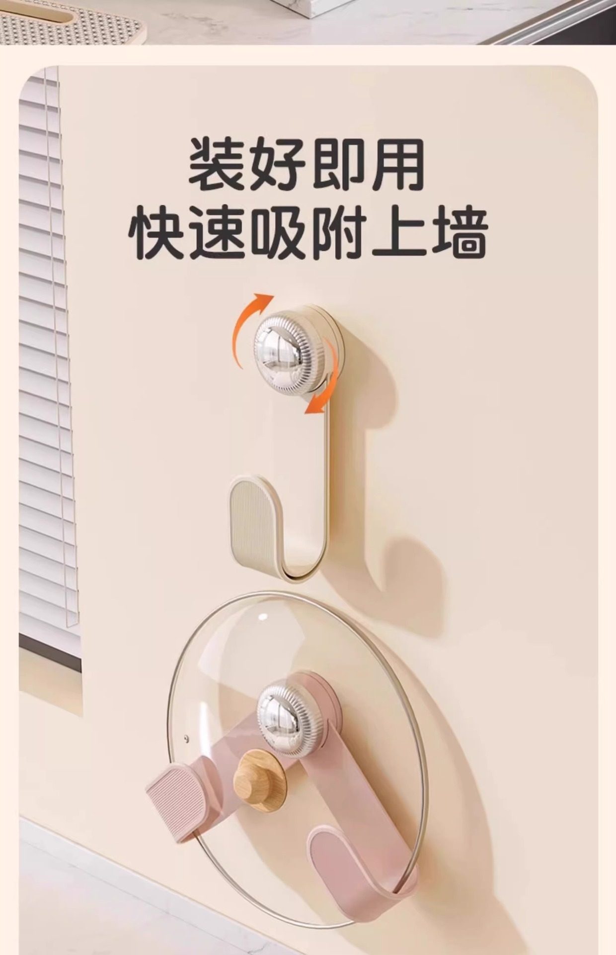 奶油吸盘旋转厨房锅盖架免打孔置物架收纳架子菜板架砧板架代发