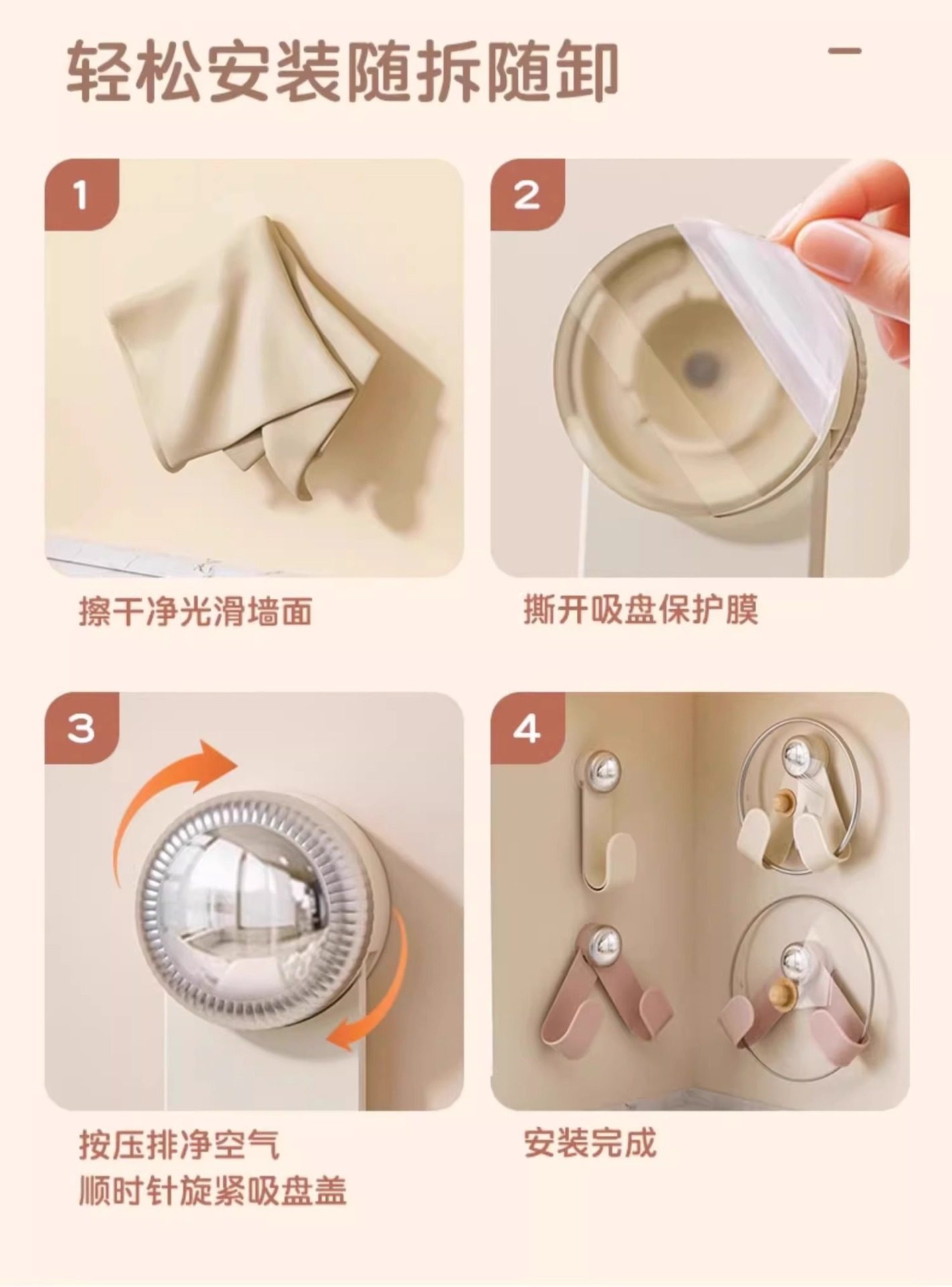 奶油粉【1个装】 【吸附牢固/间距自由调节/省空间】