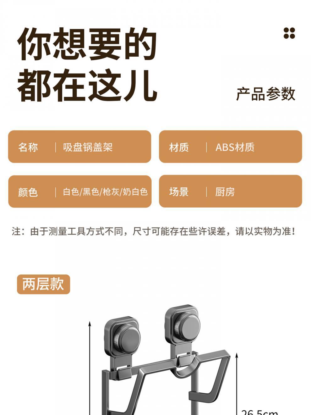商品名称:吸盘锅盖架壁挂免打孔厨房置物架多功能家用收纳菜板放置器砧板架