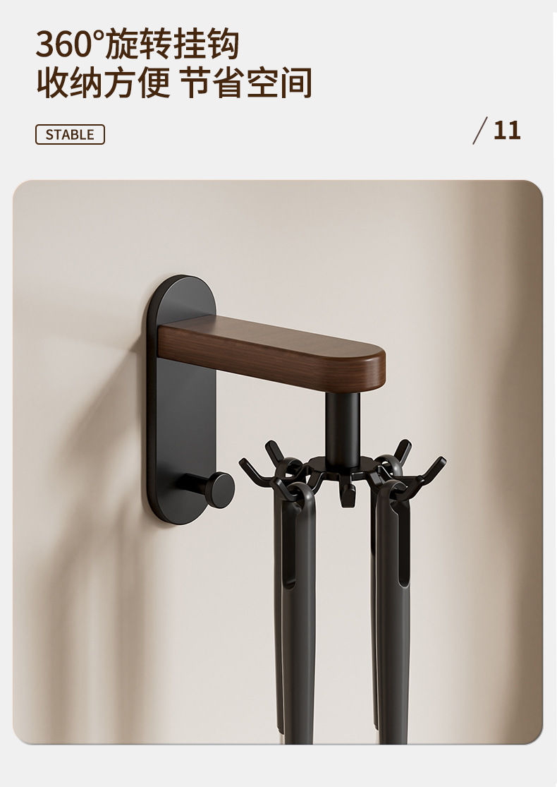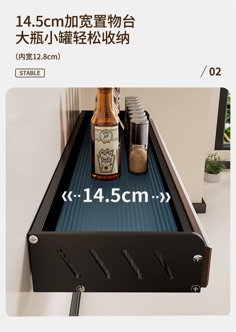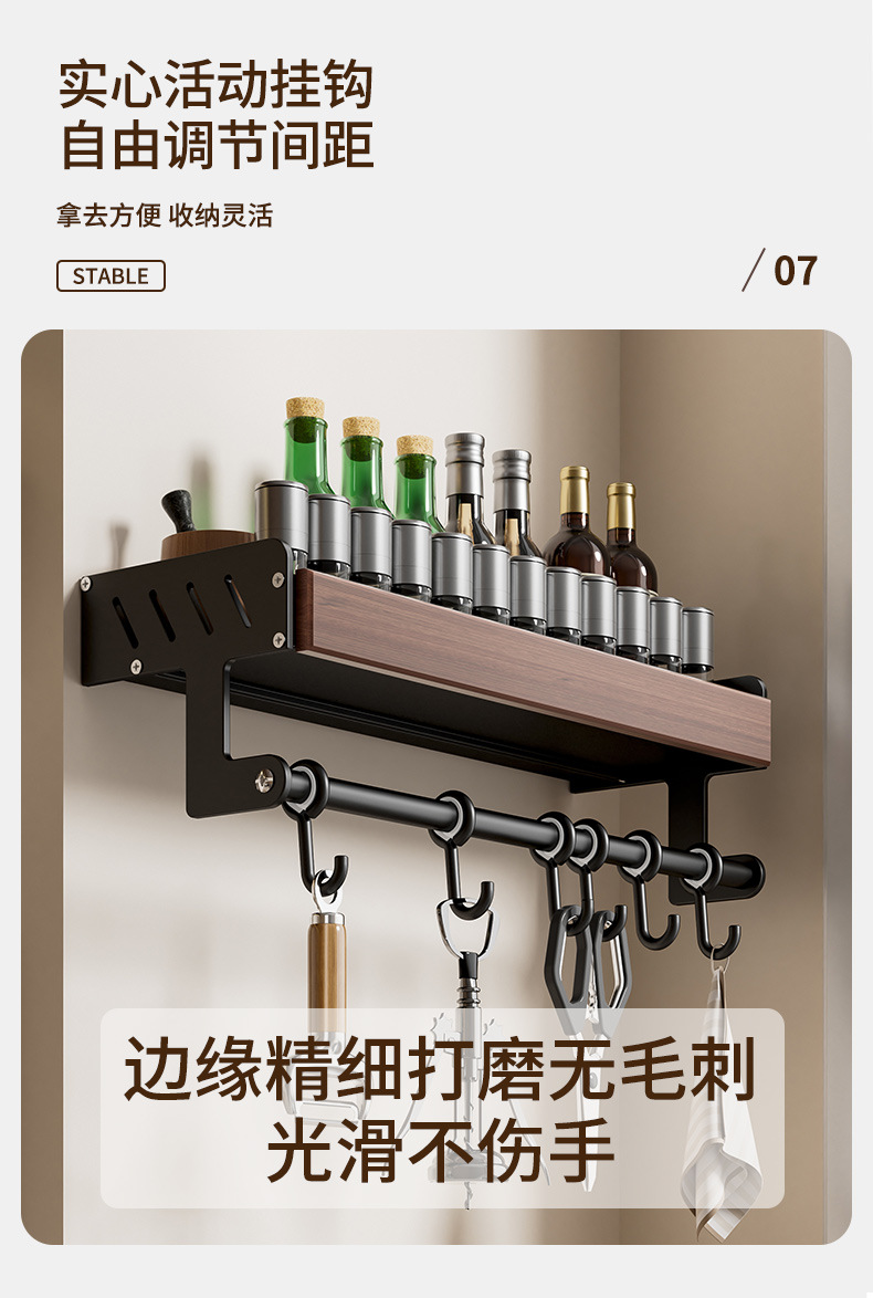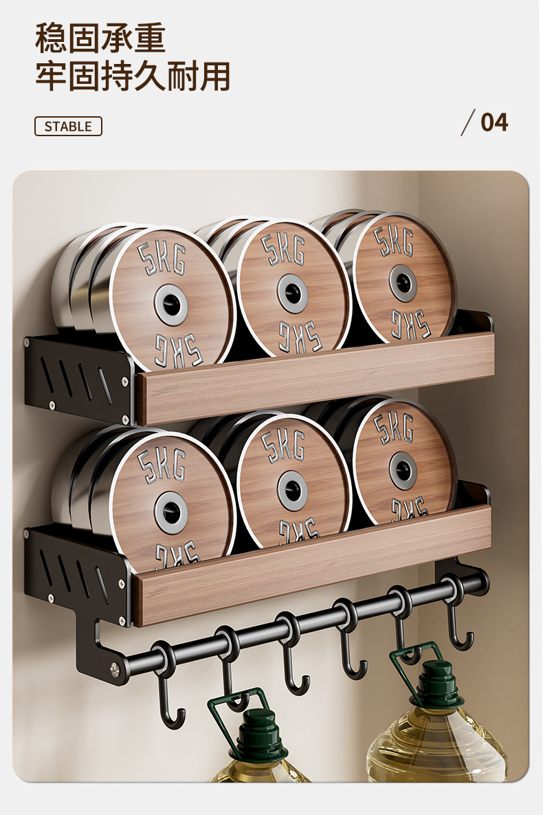 商品名称:胡桃木厨房置物架中古风免打孔多层实木锅盖刀筷勺调料壁挂收纳架