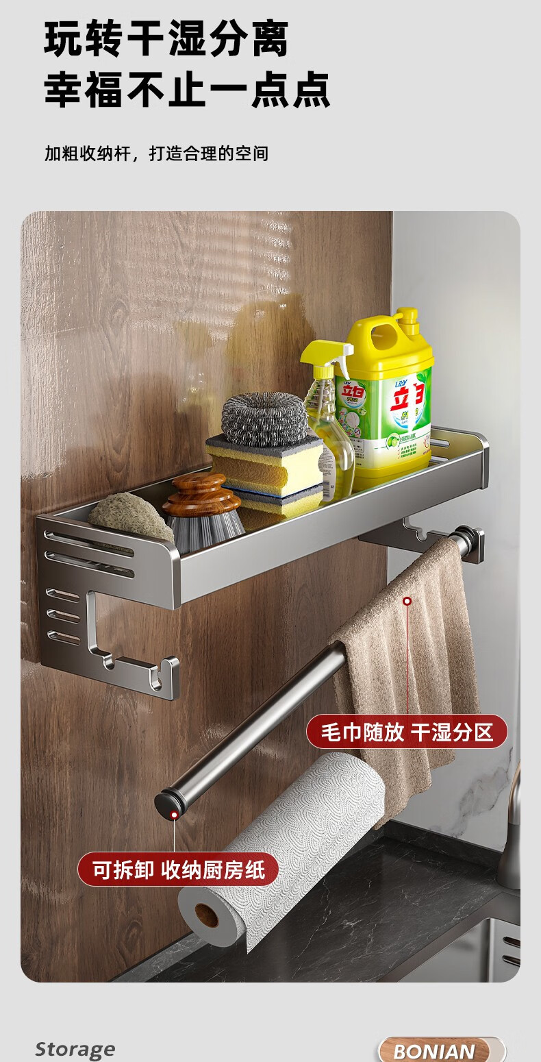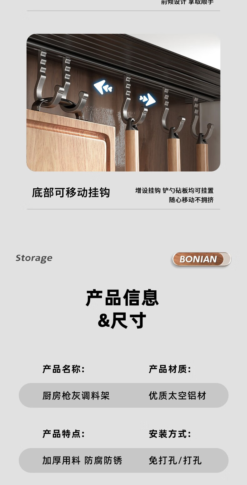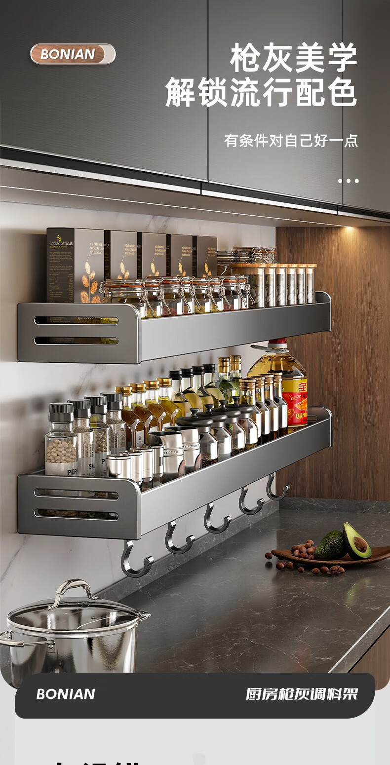 商品名称:厨房置物架调料架免打孔壁挂墙上枪灰调味品多功能家用大全收纳架