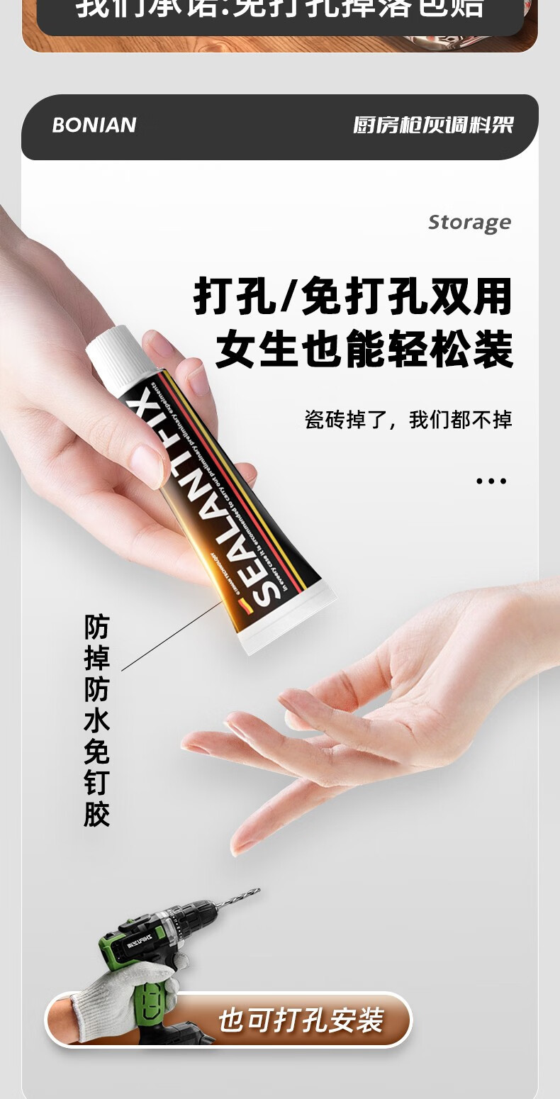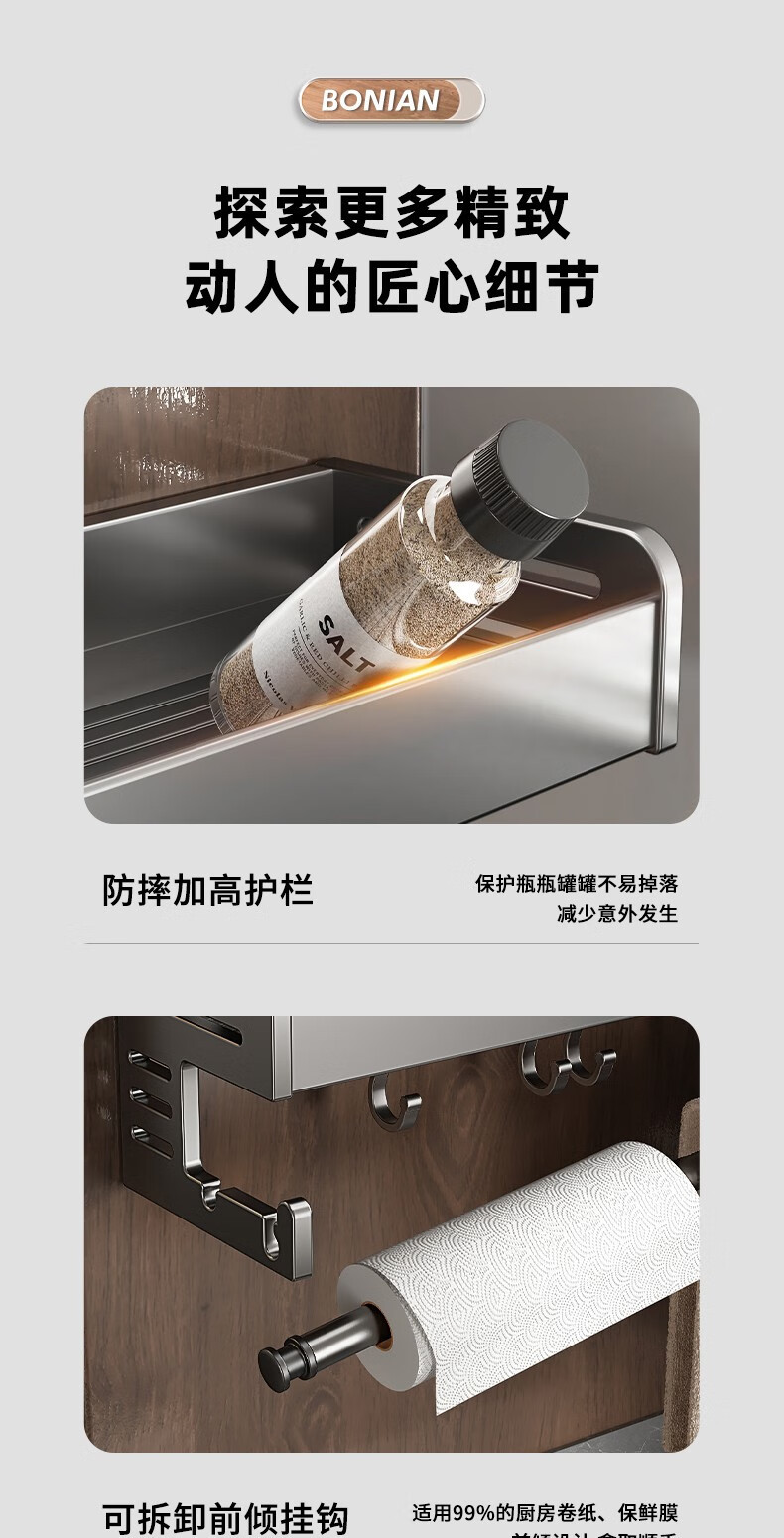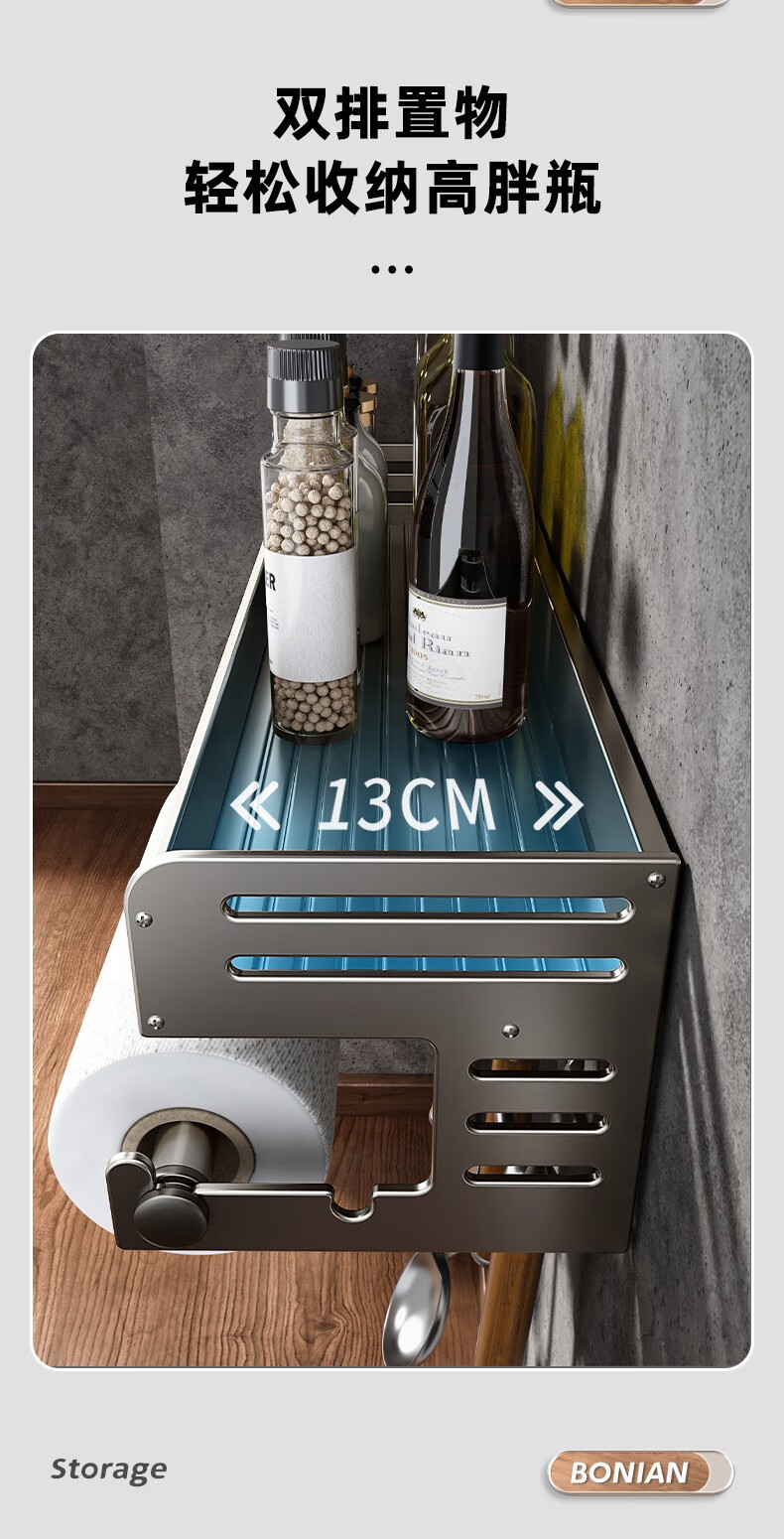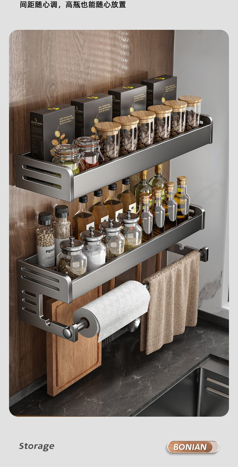 厨房置物架调料架免打孔壁挂墙上枪灰调味品多功能家用大全收纳架