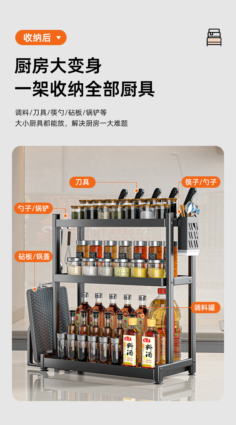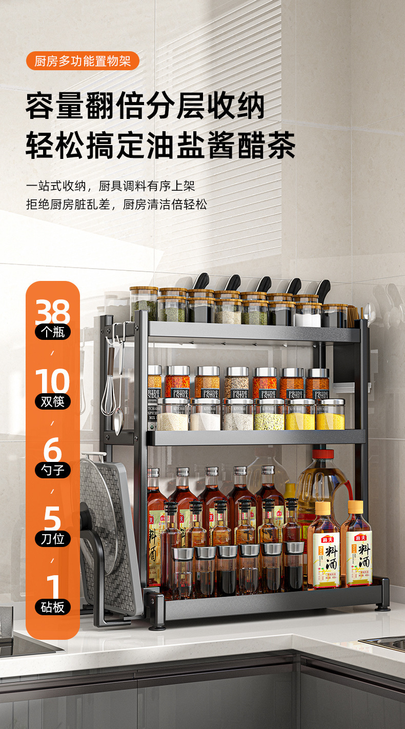商品名称:多功能厨房置物架筷子刀架台面调料调味厨具用品收纳架多层防生锈