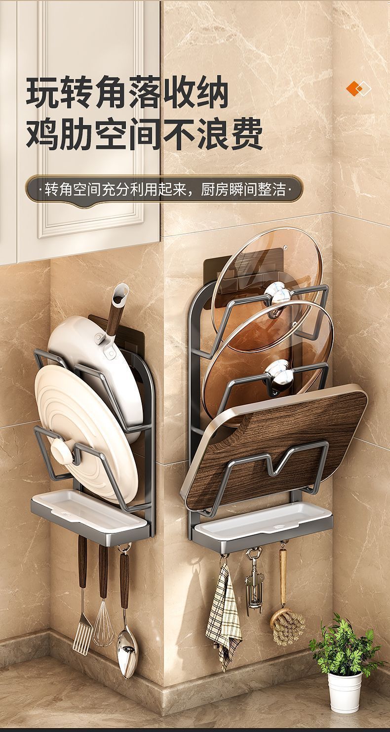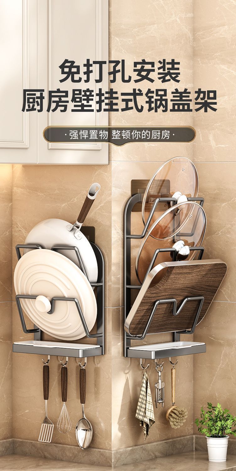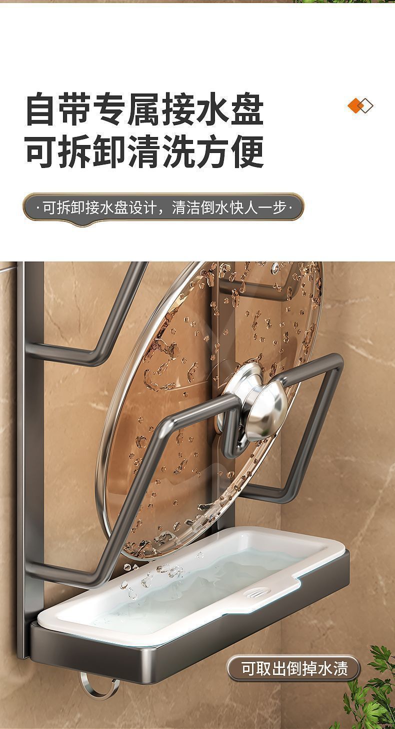 商品名称:厨房锅盖架壁挂式锅盖架收纳架带接水墙上免打孔支架放锅盖置物架