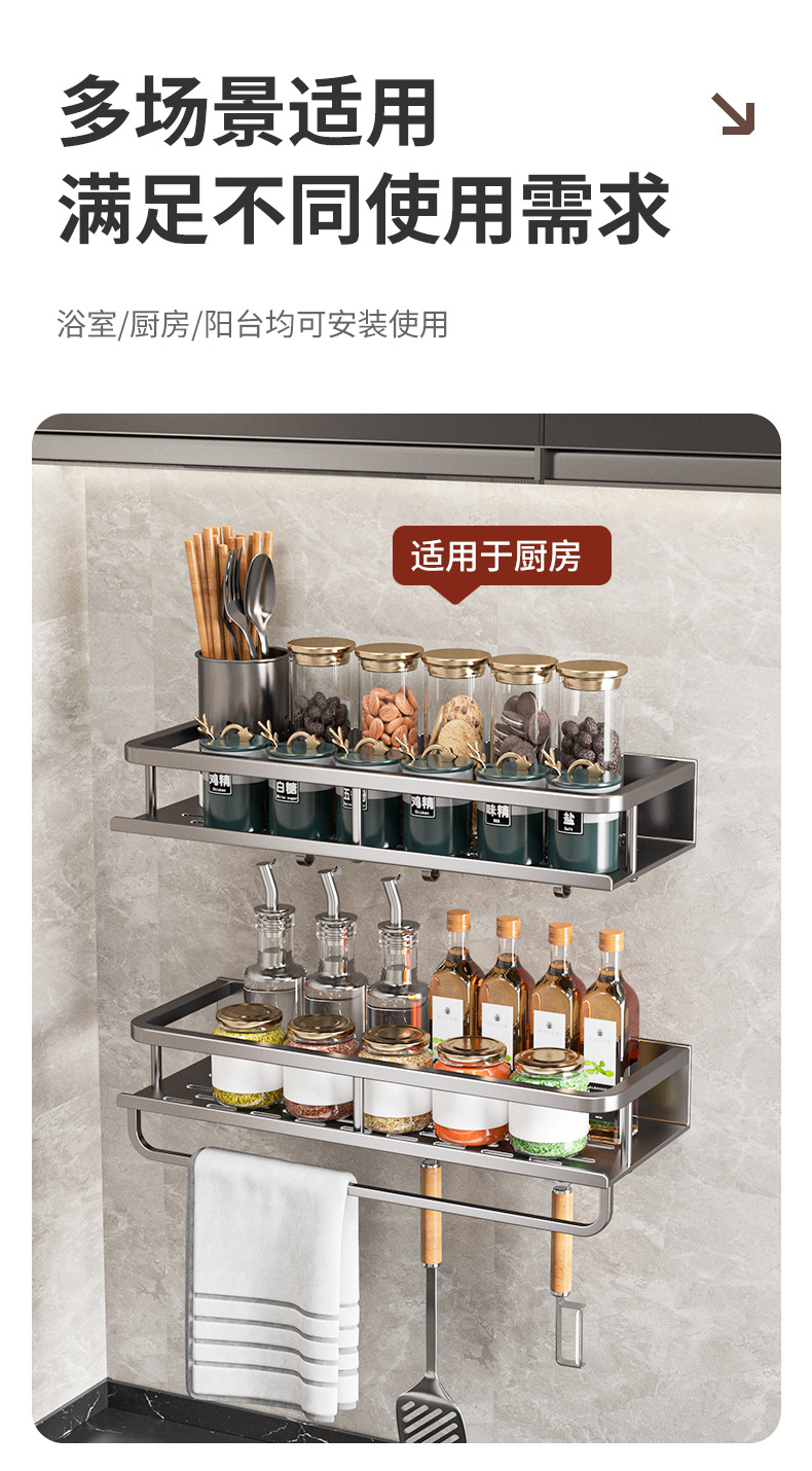 厨房收纳架免打孔壁挂式调料置物架双层多功能挂墙上调料置物架子