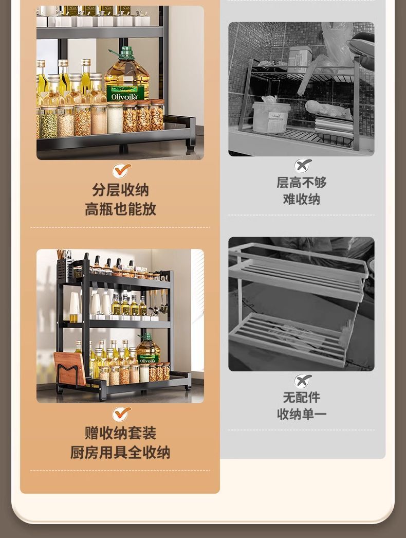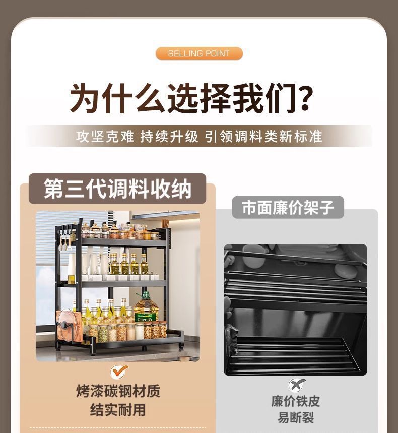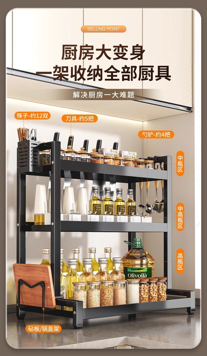 加厚曜石黑【三层50CM调料架】高配热卖款