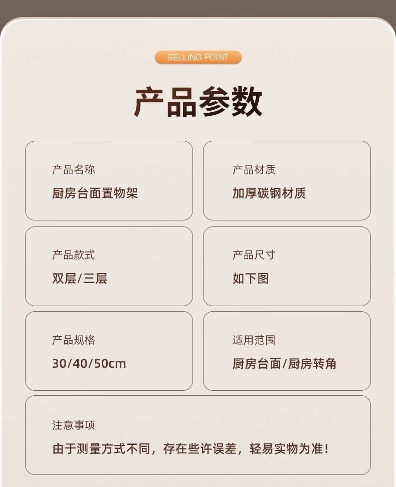 加厚曜石黑【三层40CM调料架】高配热卖款