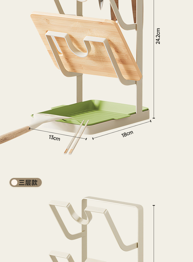 奶绿色双层【可壁挂/台式-带刀架+沥水盘】