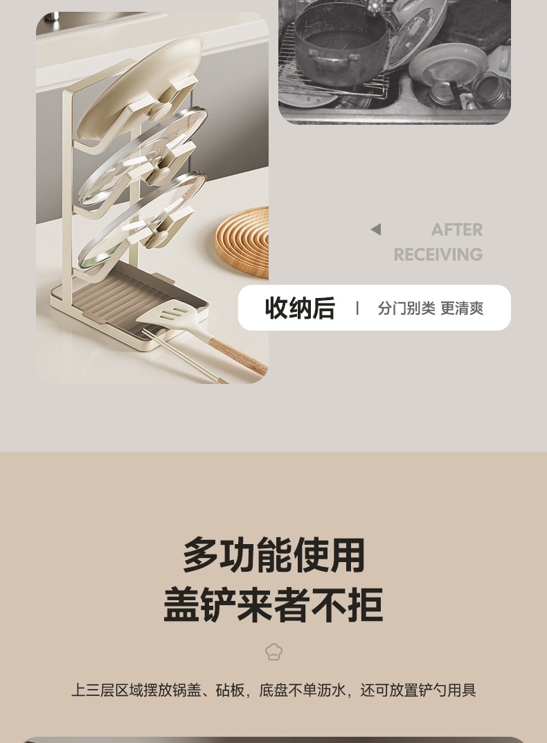 台式免打孔锅盖架厨房壁挂式多层锅铲架菜板放置架砧板菜板刀具架