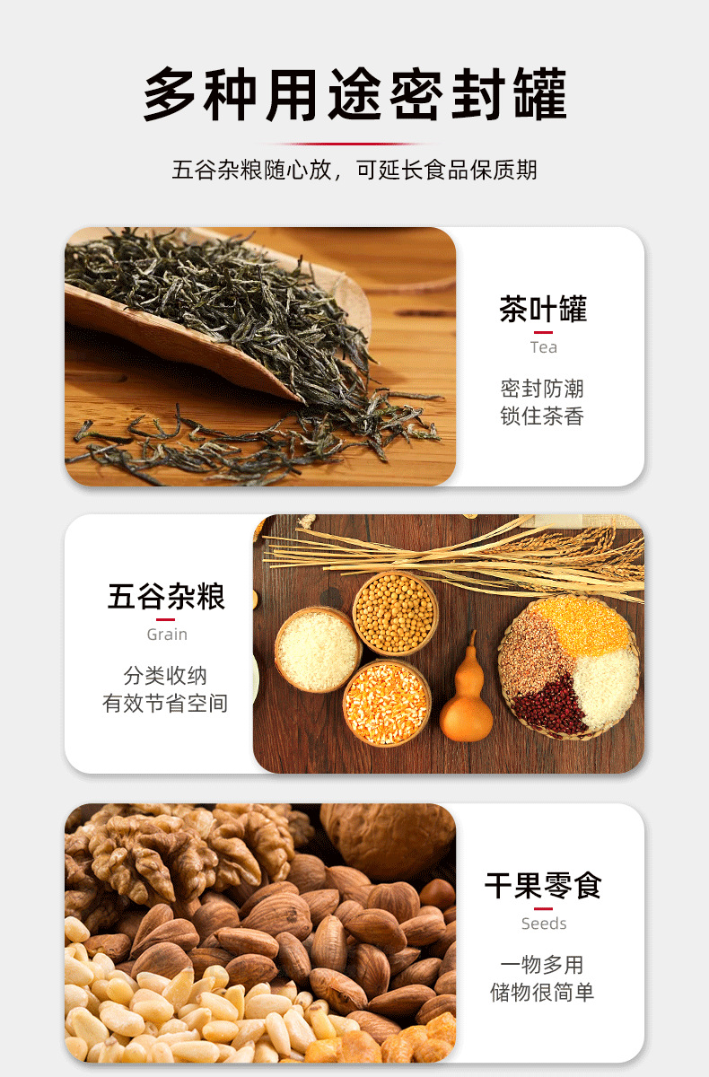 商品名称:家用密封罐玻璃瓶储存罐茶叶罐食品收纳盒五谷杂粮咖啡豆储物罐
