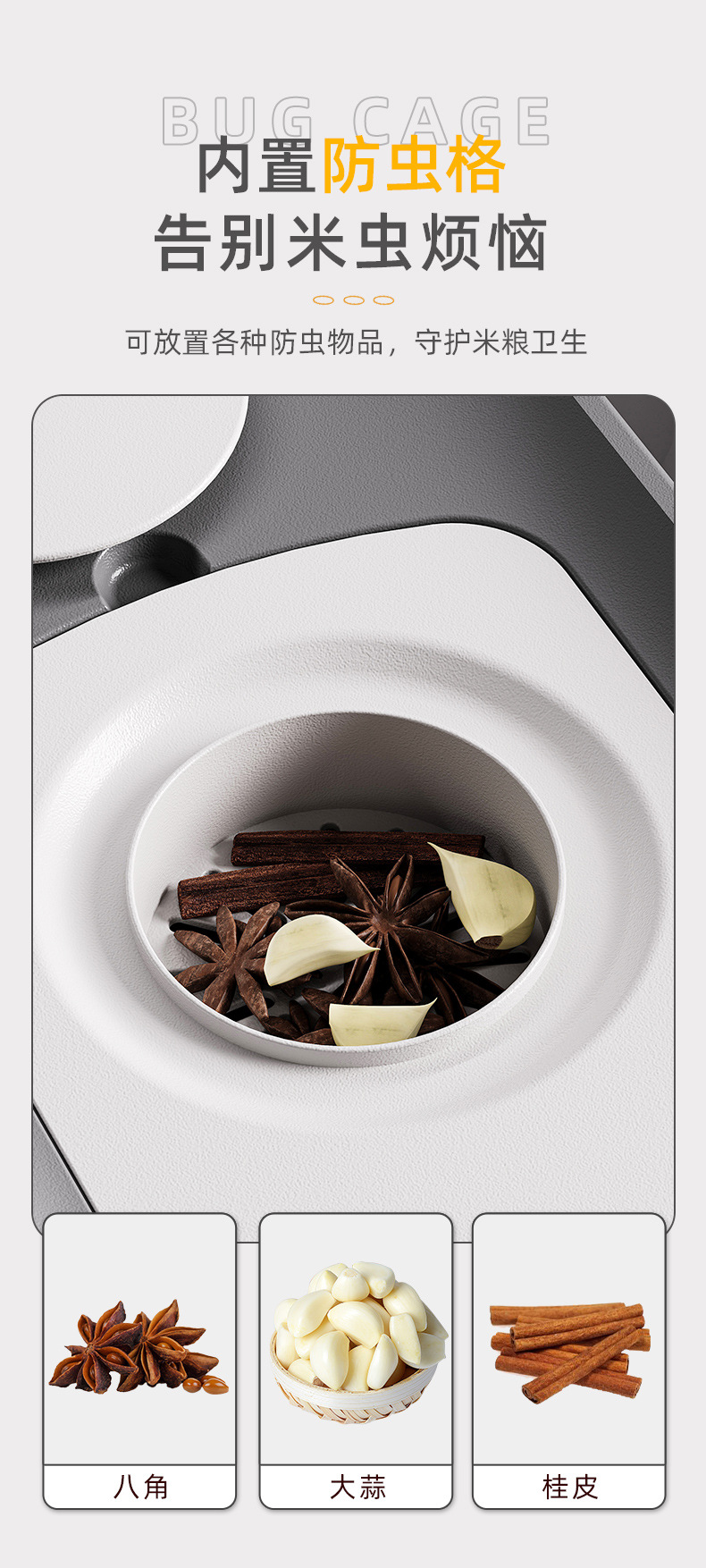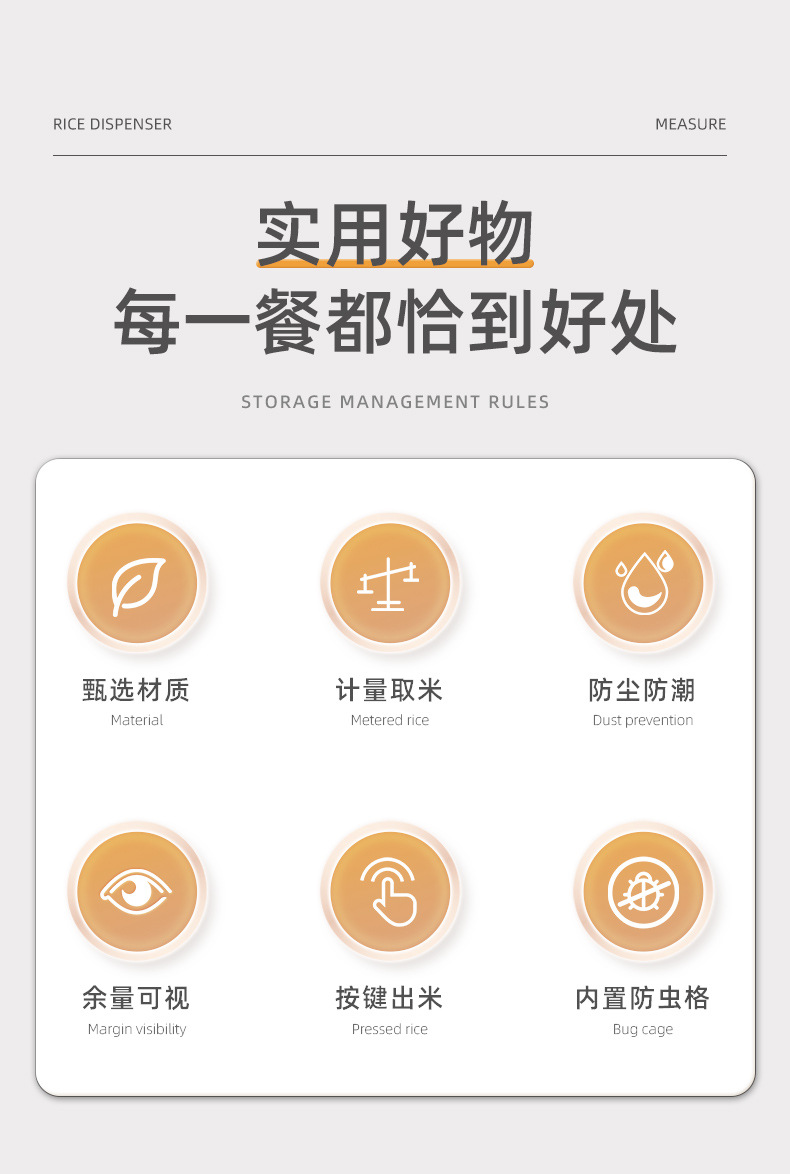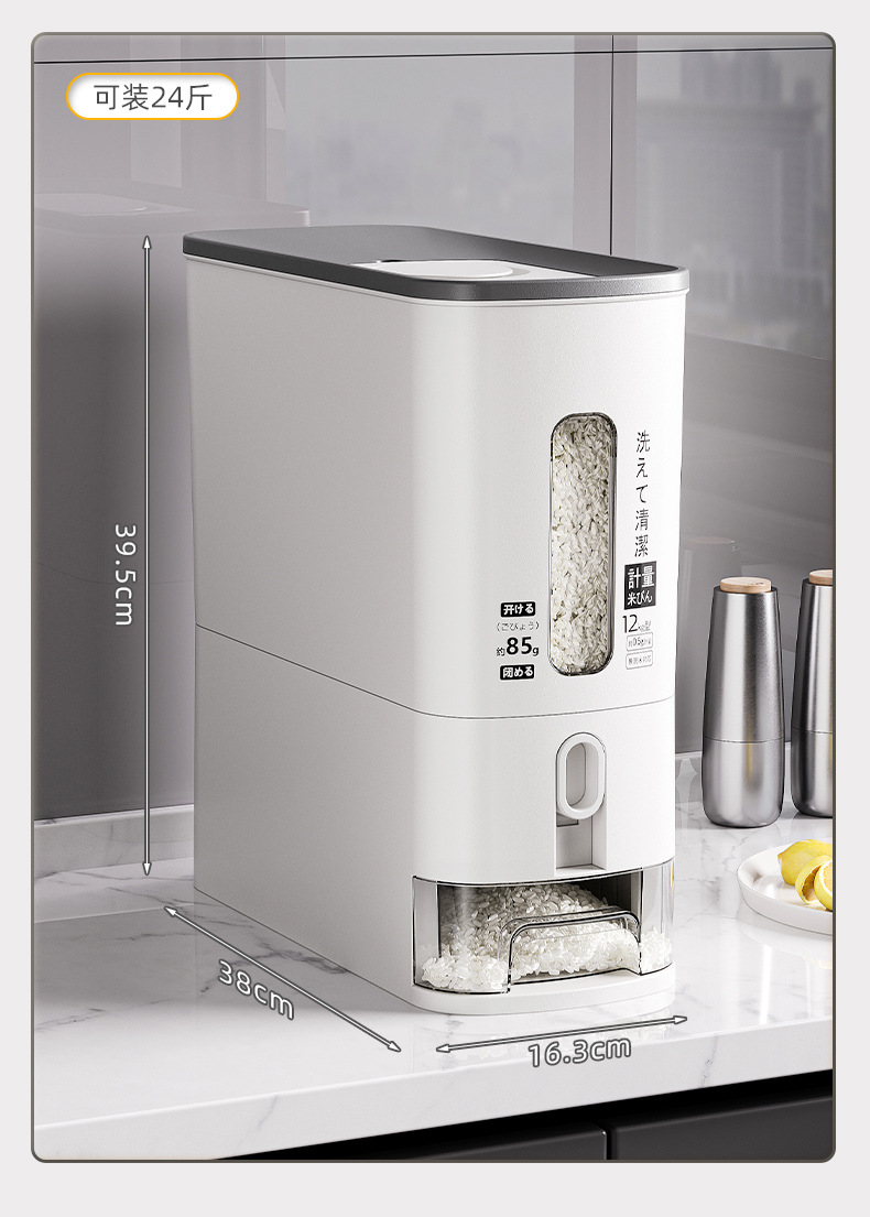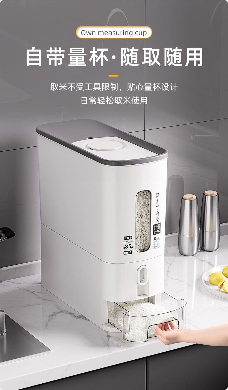 商品名称:奶油风米桶家用防潮防虫密封大容量储米箱五谷杂粮收纳桶按压米缸