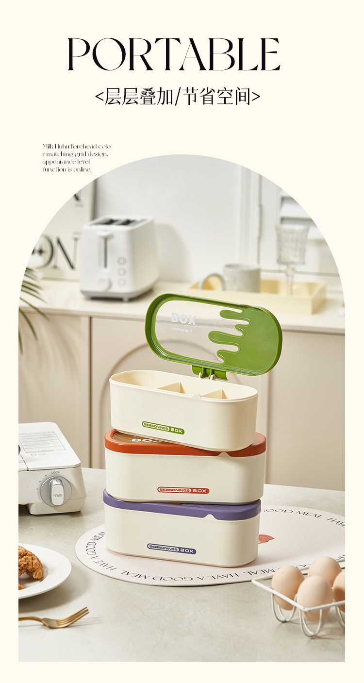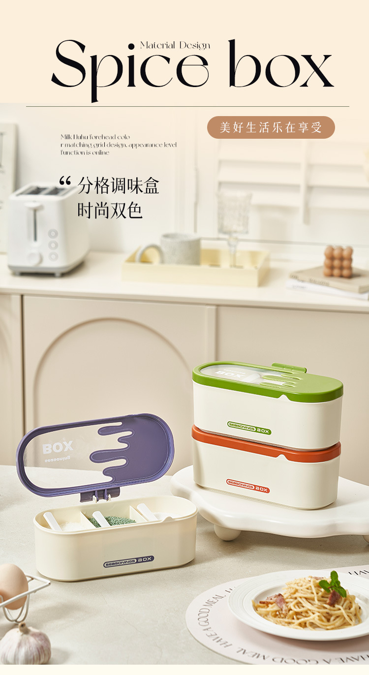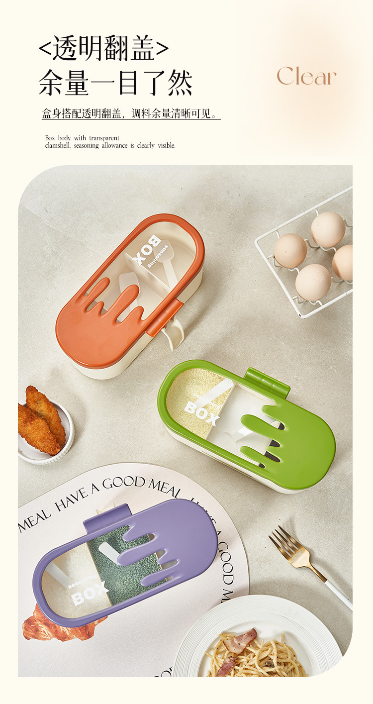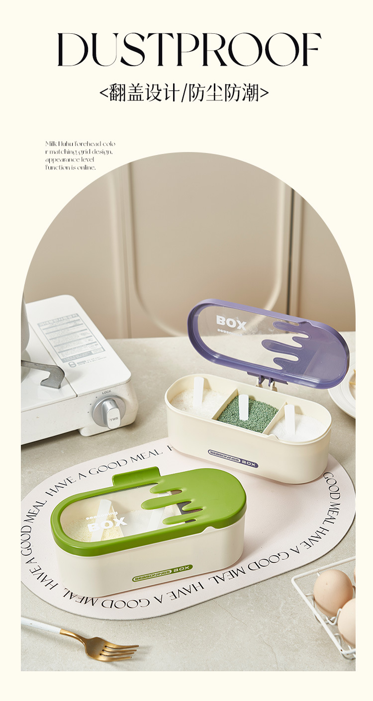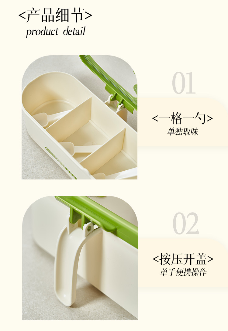商品名称:调味盒家用一体多格调料盒佐料盒厨房防尘防潮调料罐盐味精收纳盒
