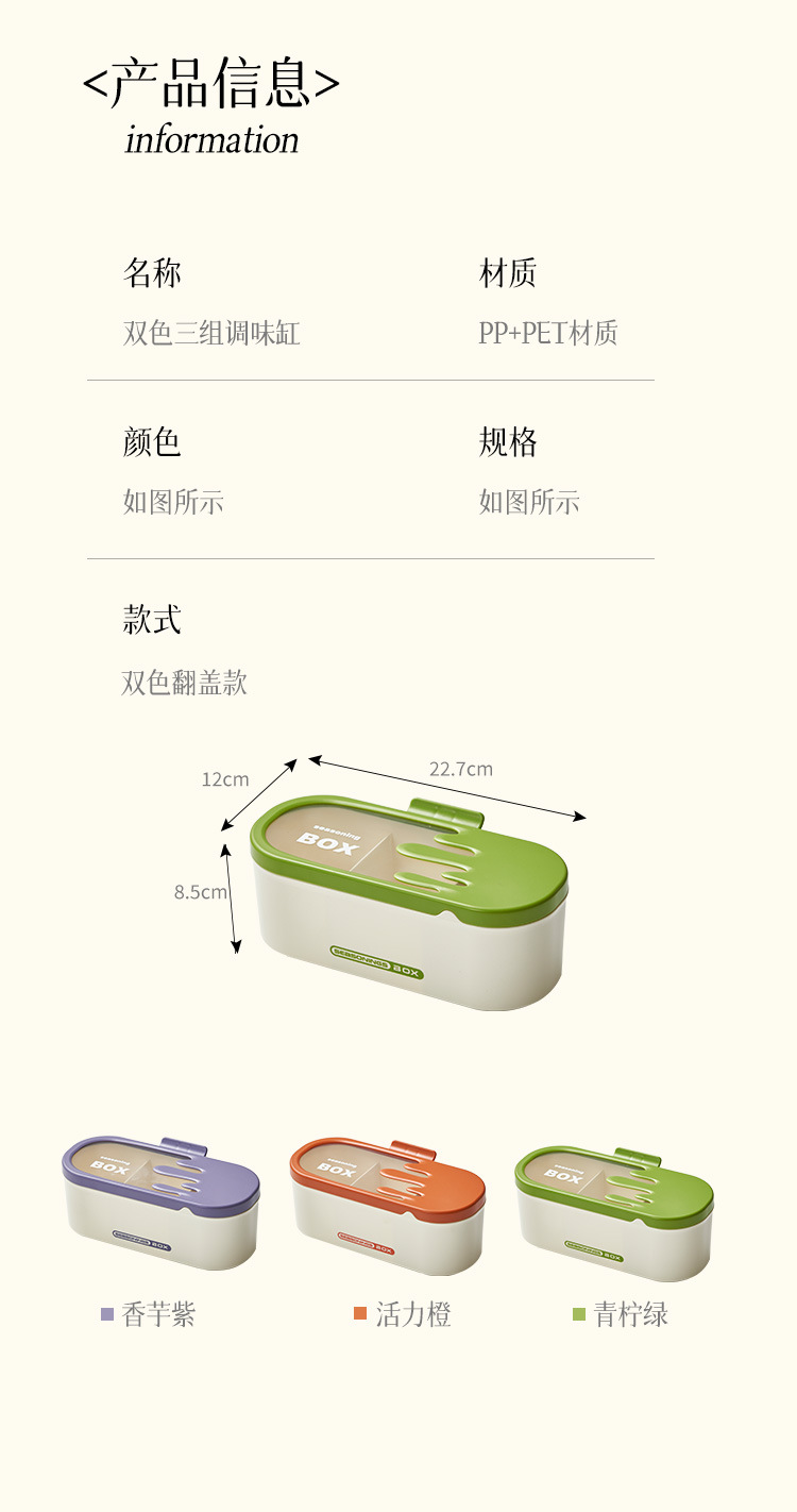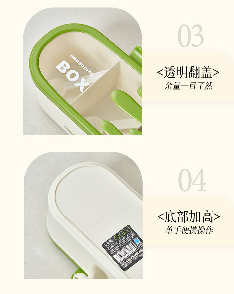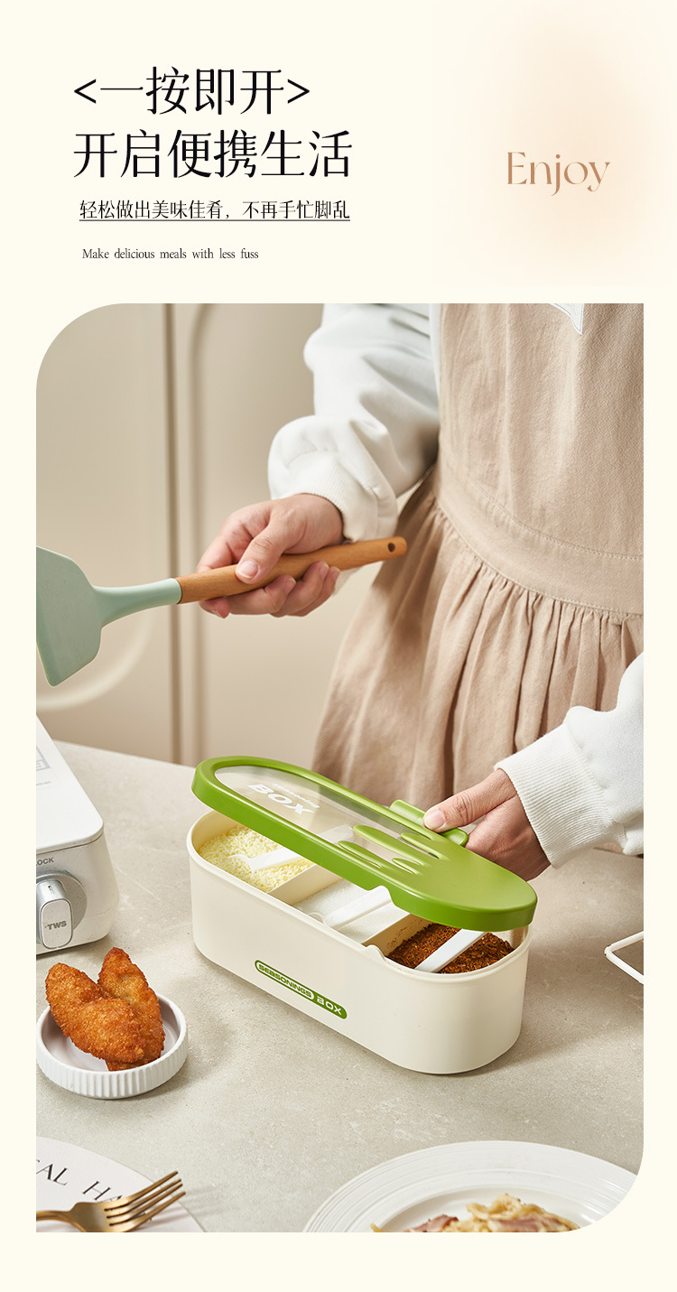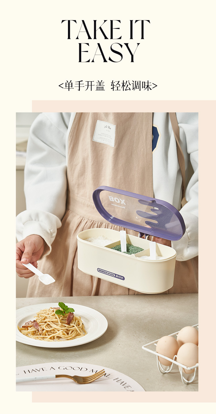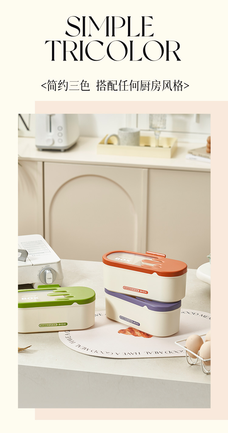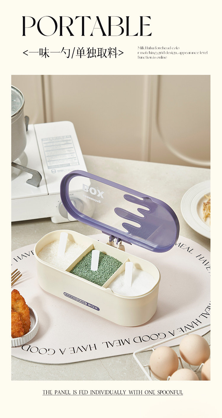 商品名称:调味盒家用一体多格调料盒佐料盒厨房防尘防潮调料罐盐味精收纳盒