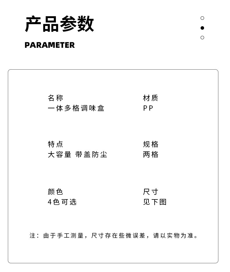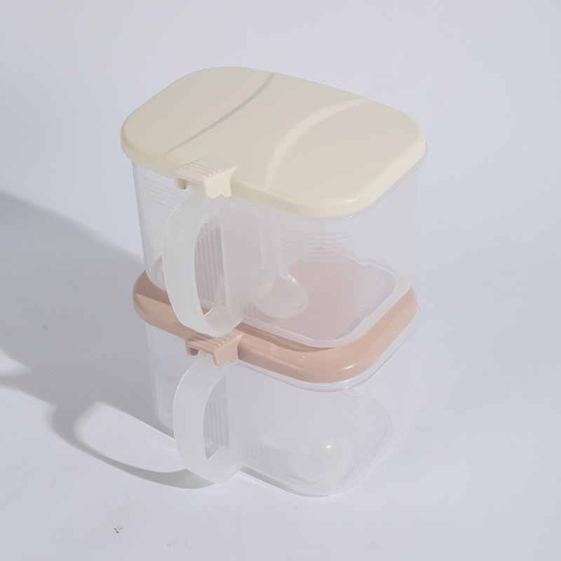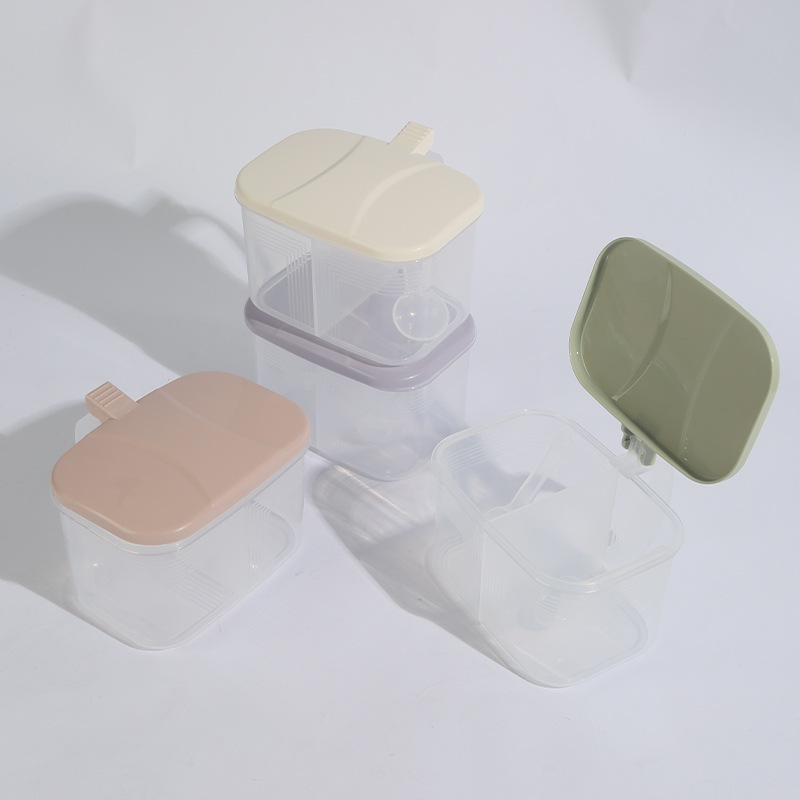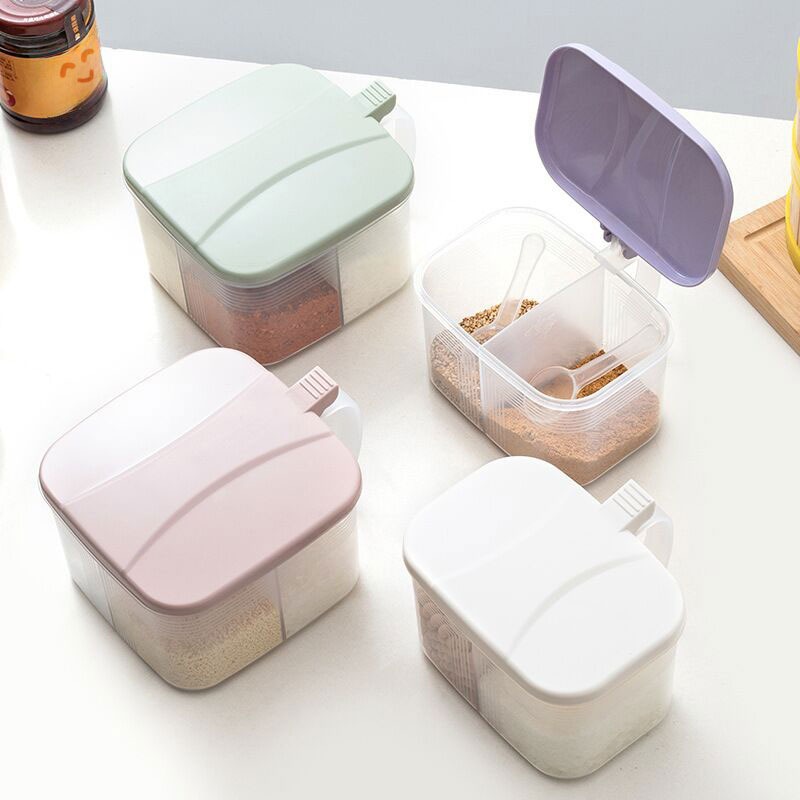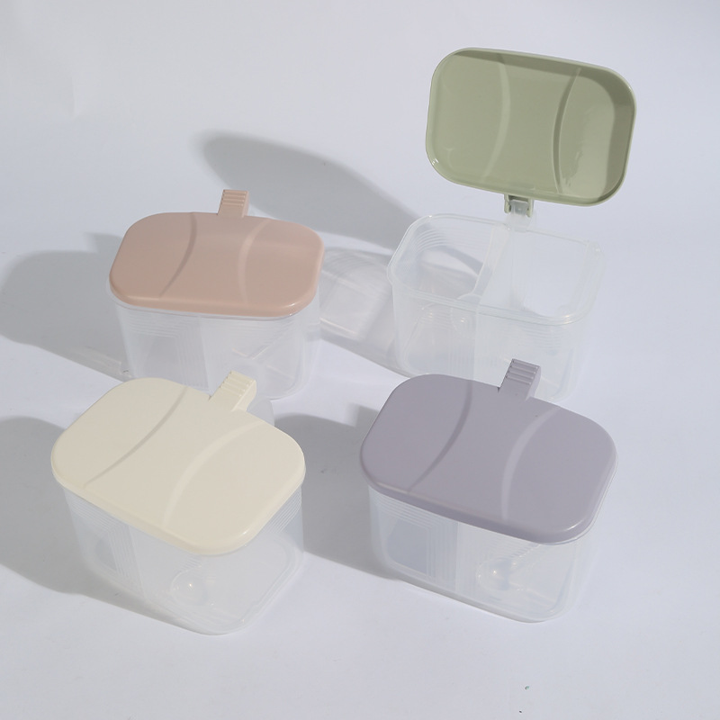 商品名称:家用厨房两格一体调料盒盐味精佐料盒塑料带勺调味盒盐罐多用途